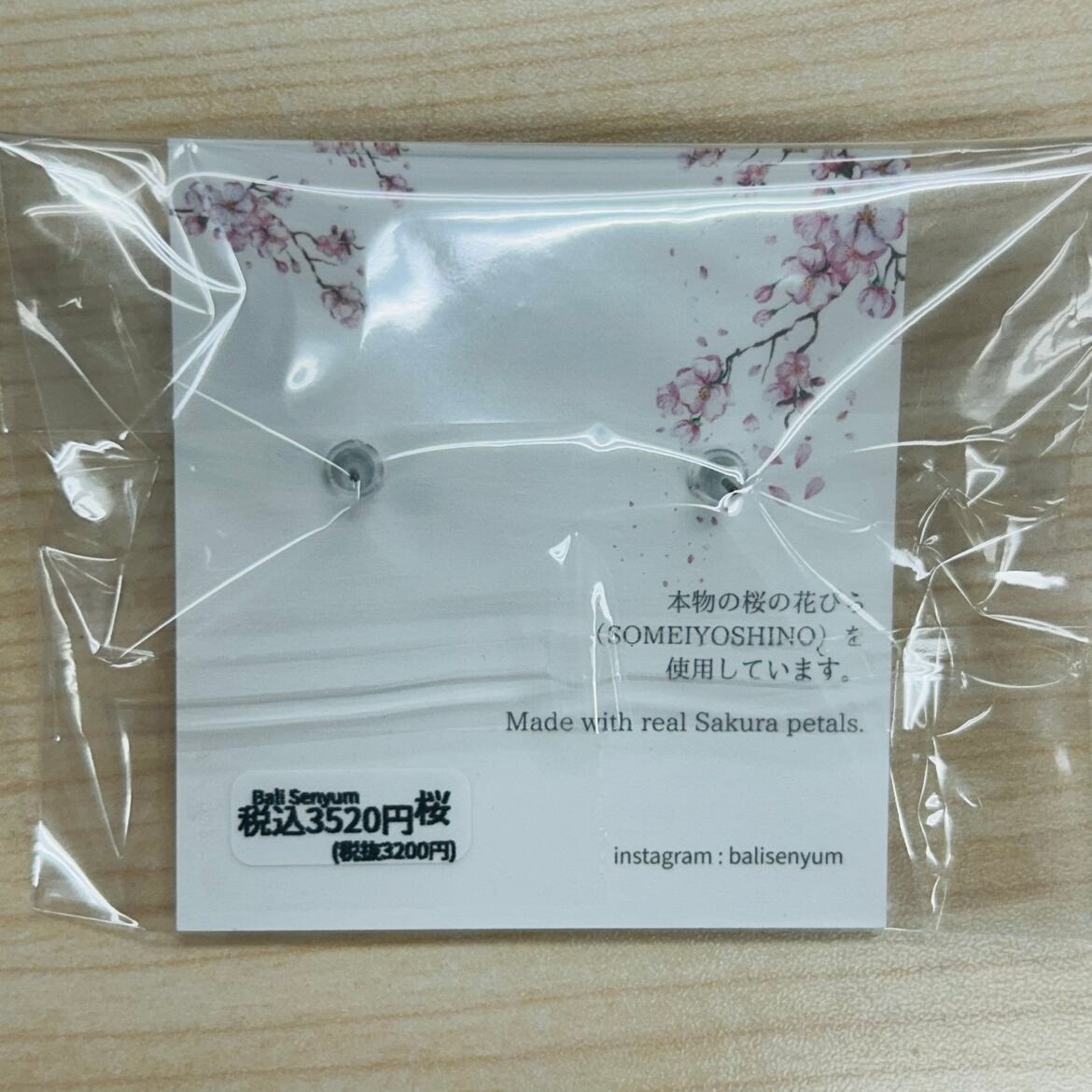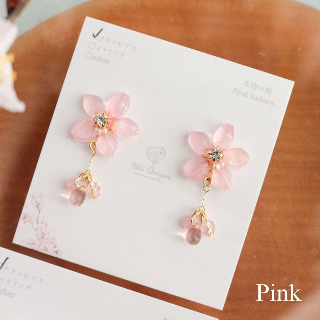 本物の桜(ソメイヨシノ)の花びらを贅沢に使用したアクセサリー。