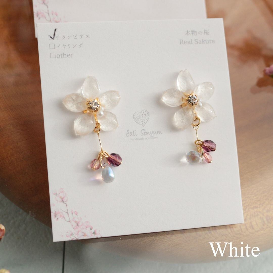 バリセニュン Bali Senyum 桜 花びら ピアス イヤリング 揺れるタイプ レディース お花 ソメイヨシノ おしゃれ かわいい 大ぶり ギフト プレゼント ピンク ホワイト Pearl and Bead Bouquet #S012 Ac033