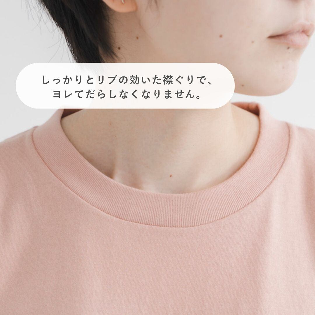 透けにくく安心感のある厚手のコットン素材を採用。首元もしっかりとしたリブ仕様で、お洗濯を繰り返してもヨレにくく、長くご愛用いただけます。