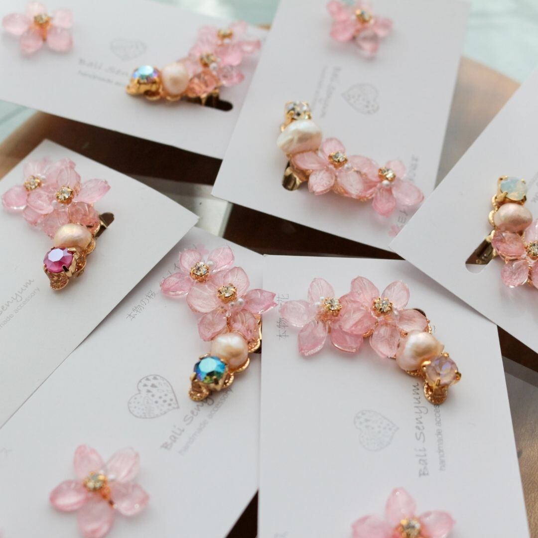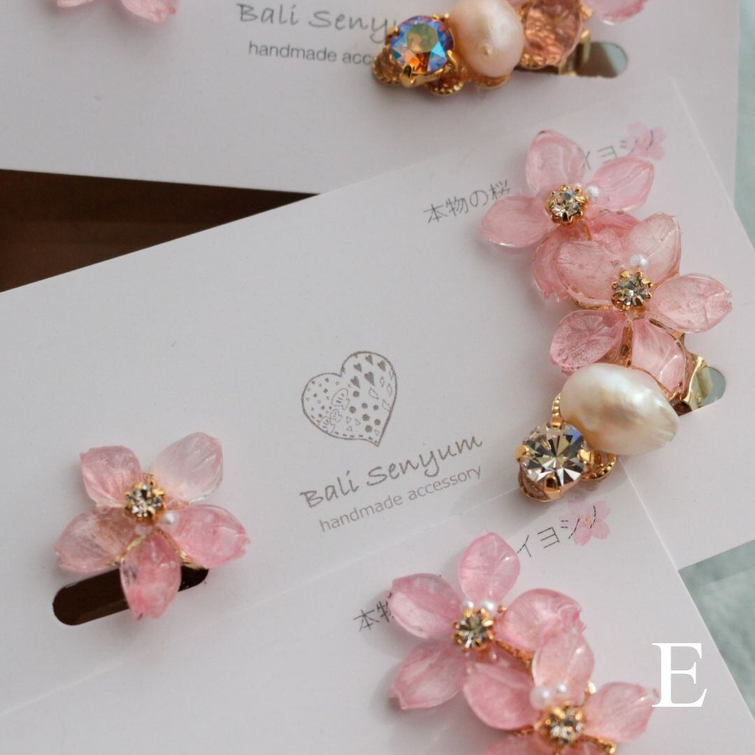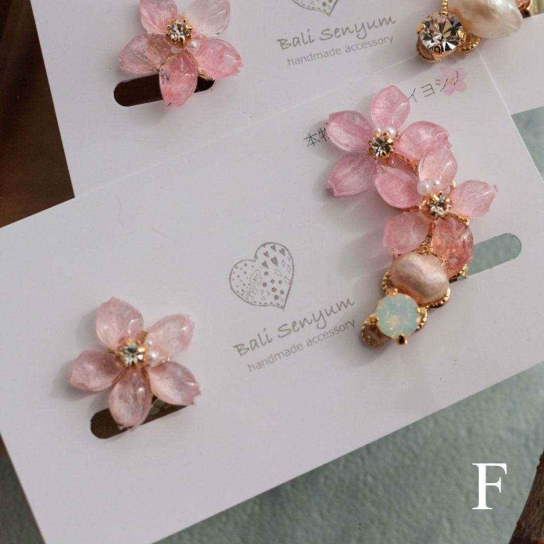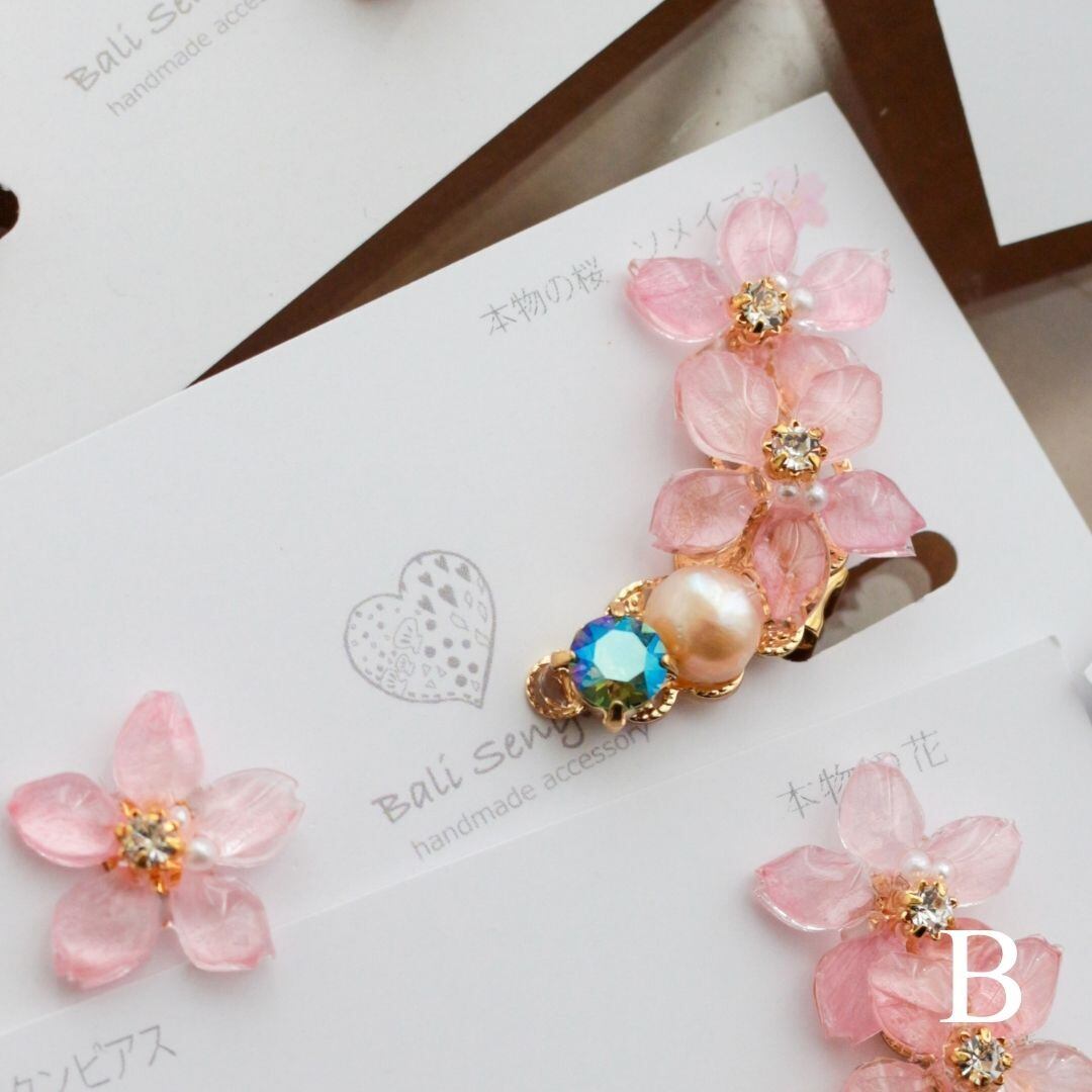 バリセニュン Bali Senyum 桜 花びら 本物 ピアス イヤリング イヤーカフ セット レディース かわいい お花 ソメイヨシノ チタン おしゃれ 大ぶり 大きめ ギフト プレゼント ピンク #S028 Ac037