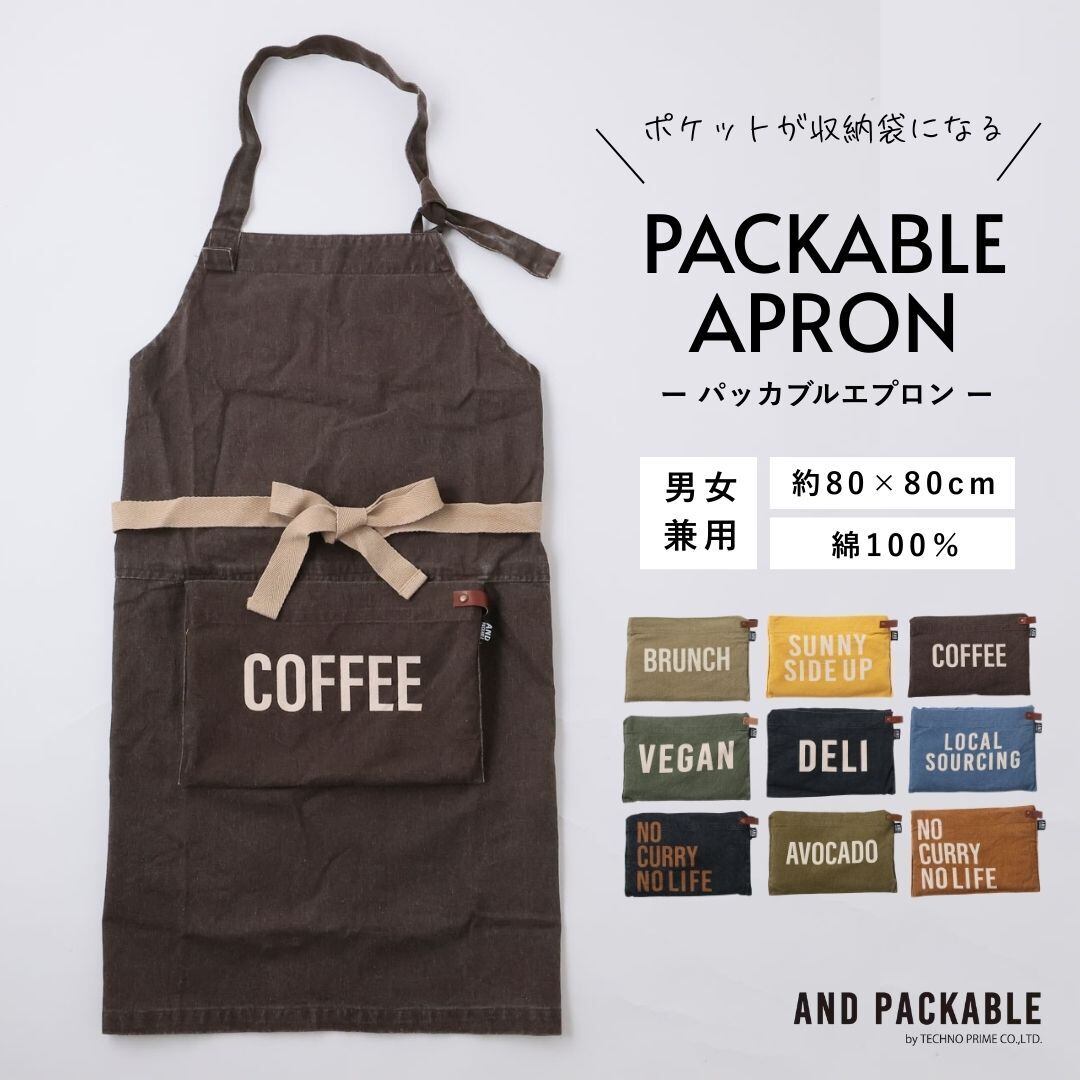 テクノプライム エプロン レディース メンズ 男女兼用 ユニセックス ロゴ 綿100% コンパクト 持ち運べる 料理 家事 ガーデニング パッカブルエプロン ワークエプロン ダメージ加工 DIY AND PACKABLE プレゼント ギフト Tp002