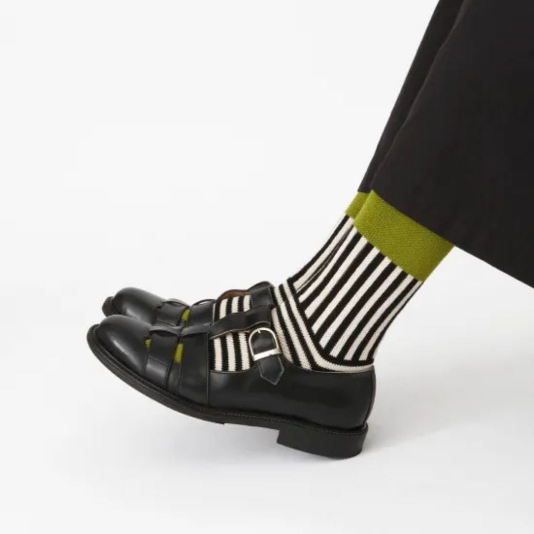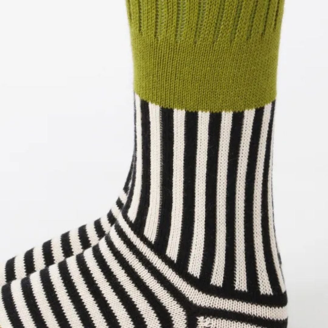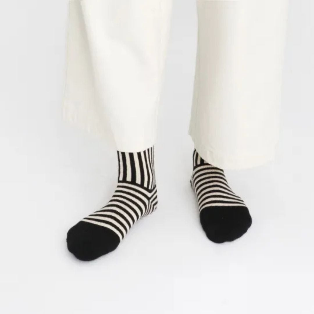 大胆に切り替え、階段をイメージしたデザインのソックス。
