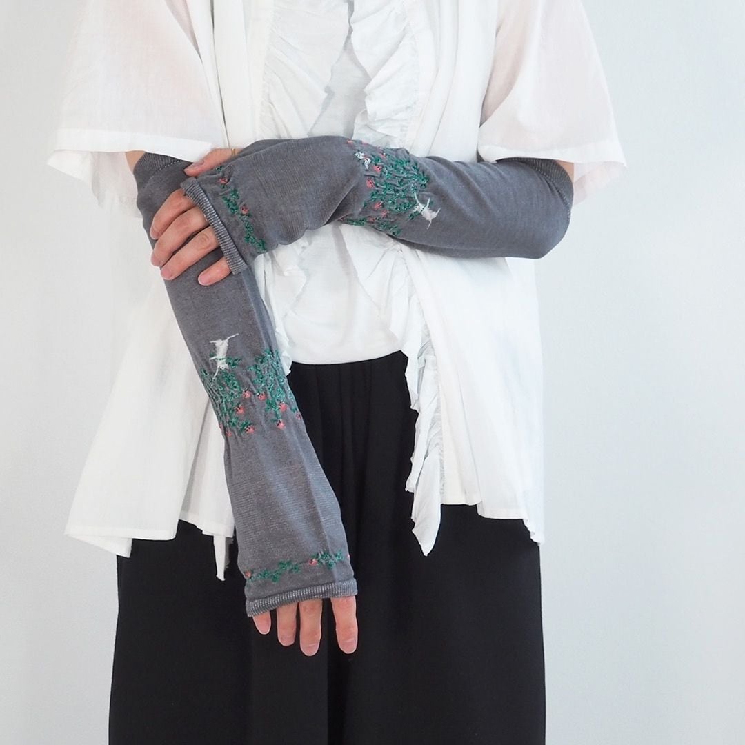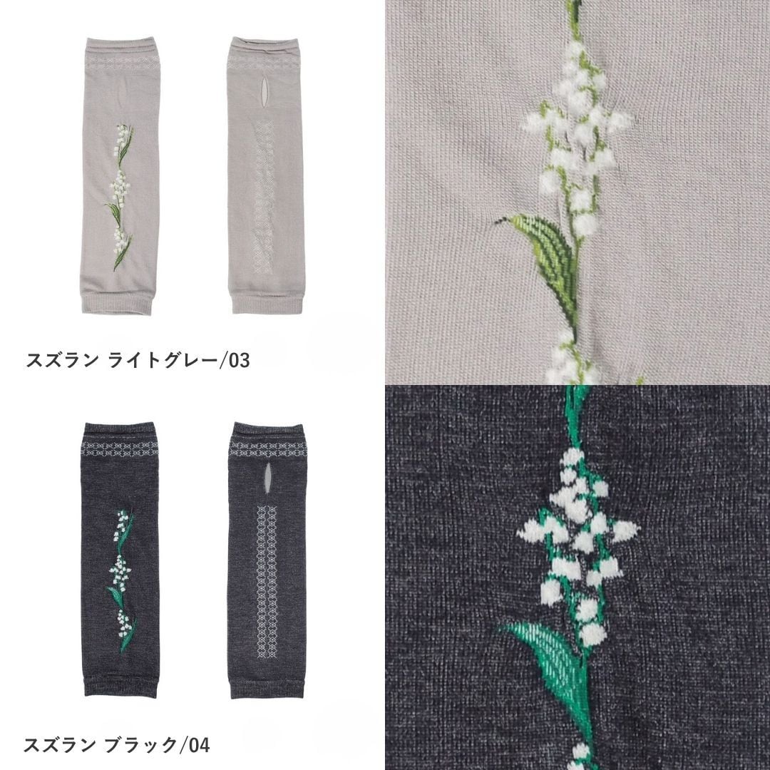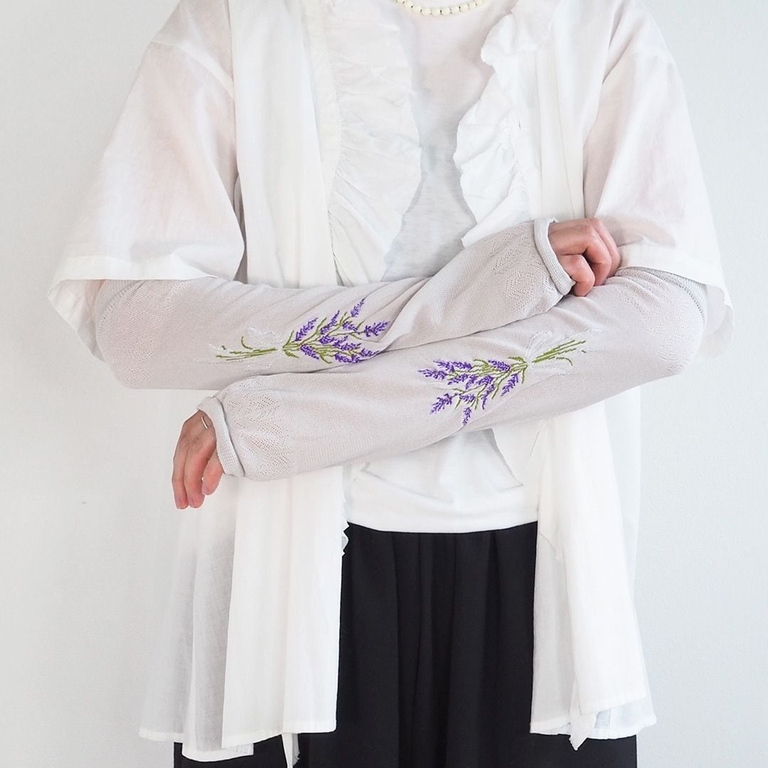 腕全体をしっかり紫外線から守りつつ、刺繍のデザインが上品な印象を与えてくれます。