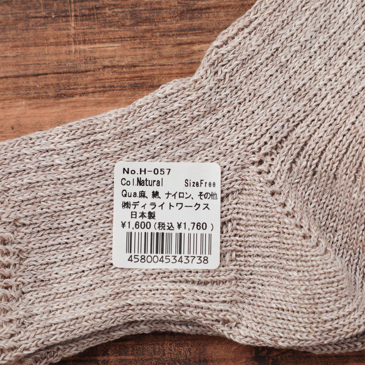 程よくローゲージに編み立てており、麻特有のドライな風合いで清涼感のある履き心地です。