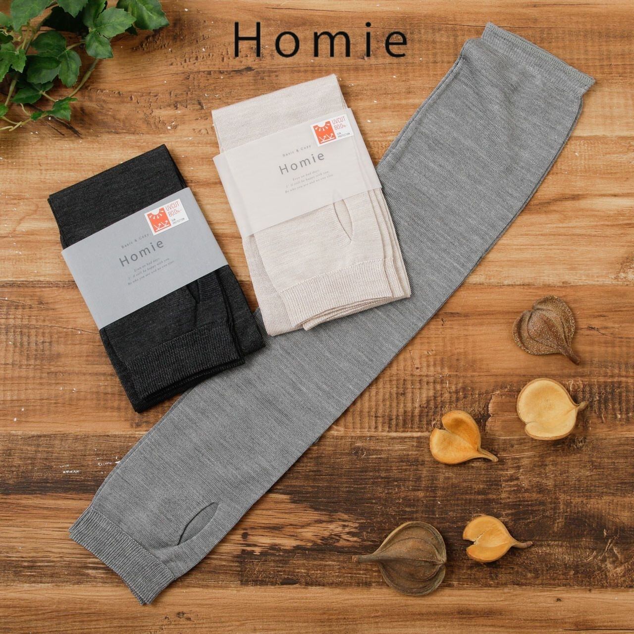 【送料無料】Homie アームカバ― UVカット レディース 二の腕 ロング 可愛い お洒落 シルク 日本製 uvカット uv 日焼け対策 ゆったり 日焼け防止 冷房対策 ホミー チャコール グレー ベージュ HA-008 Hm037