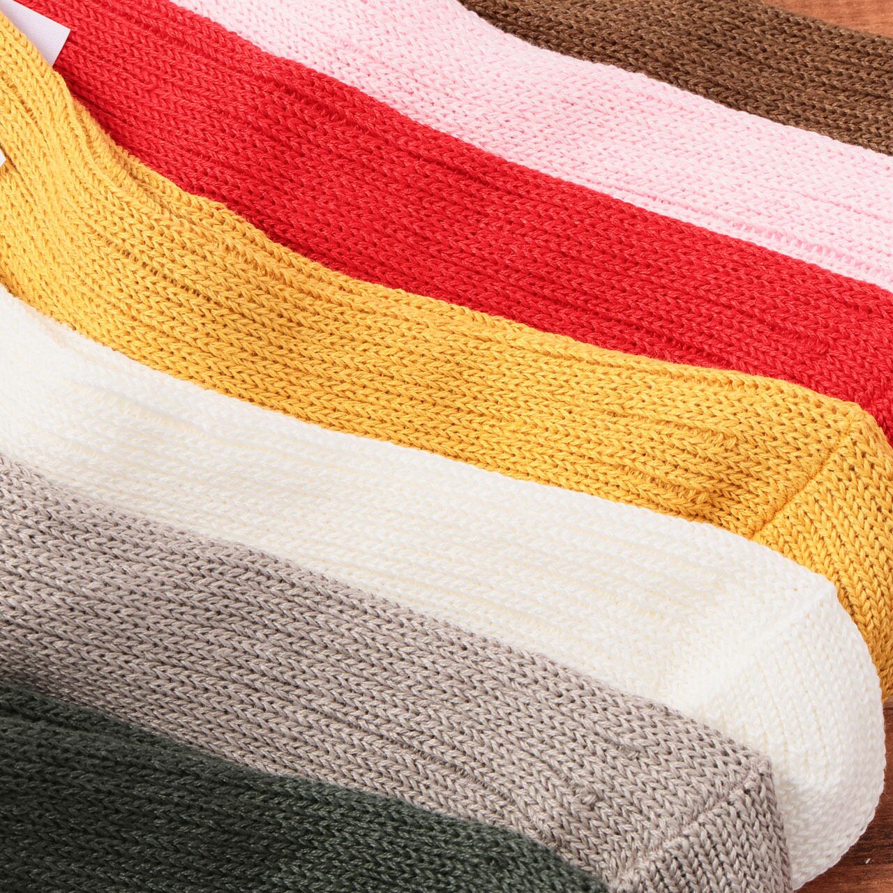 ヴィンテージの編み機でゆっくりと丁寧に編んだローゲージソックス。