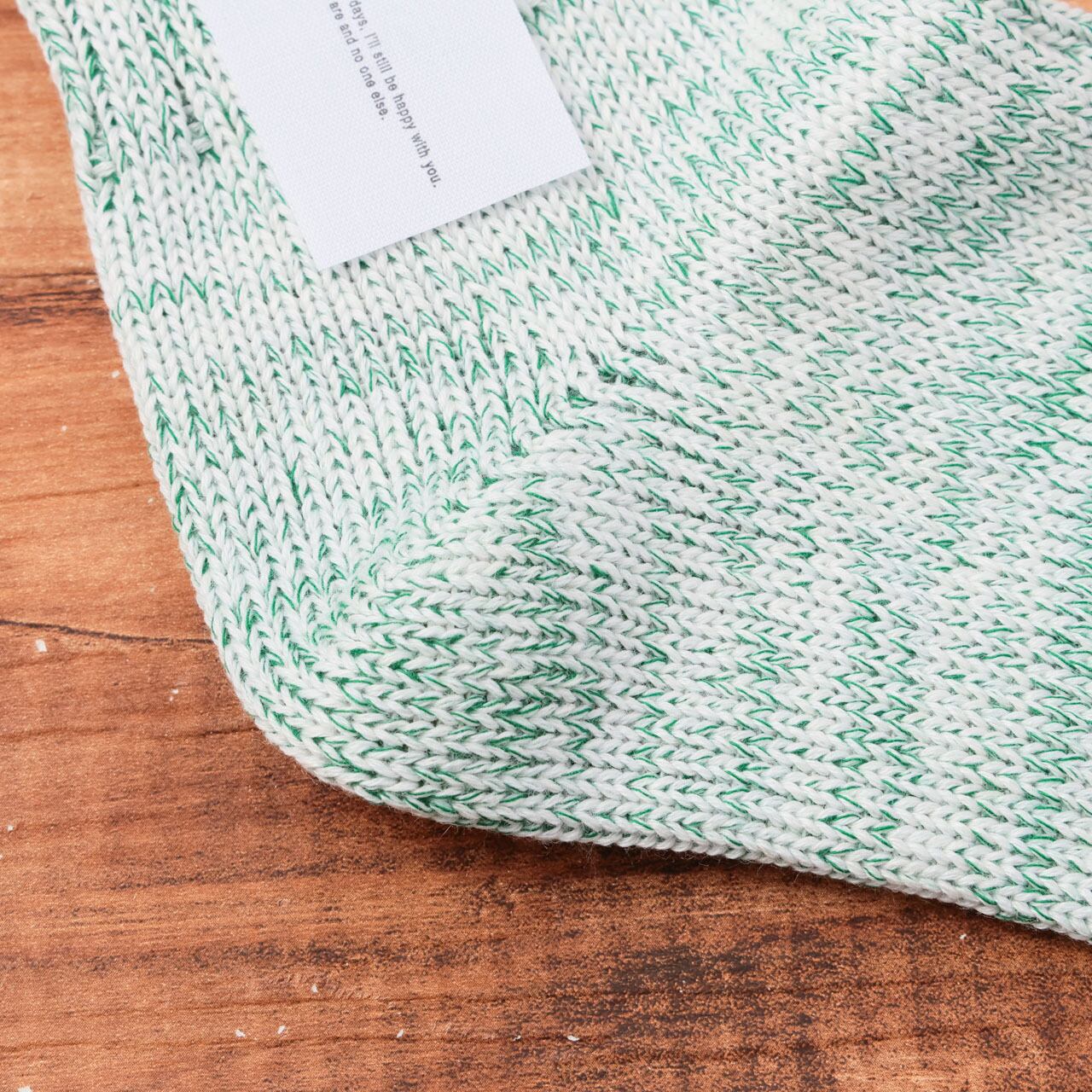 ヴィンテージの編み機でゆっくりと丁寧に編んだローゲージソックス。