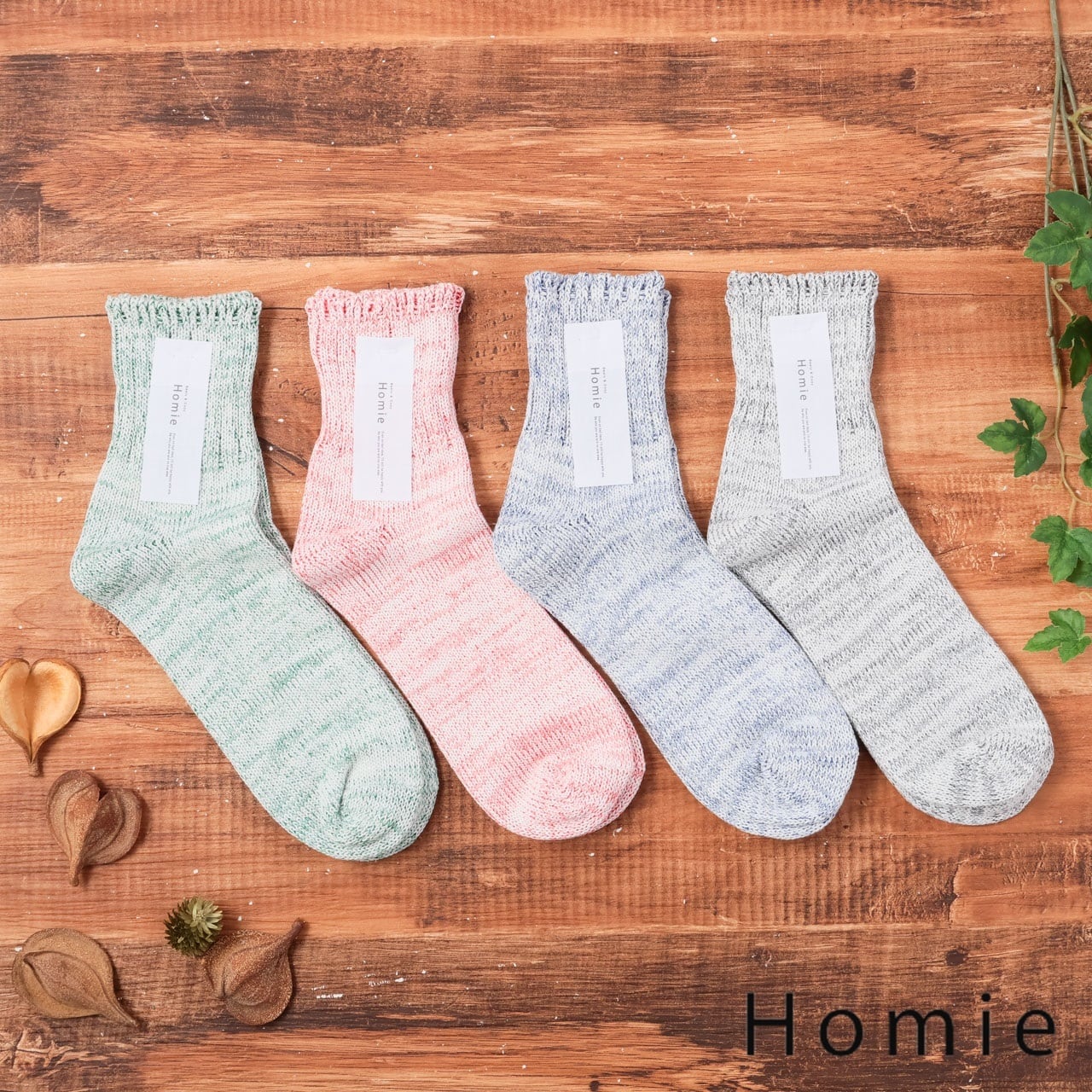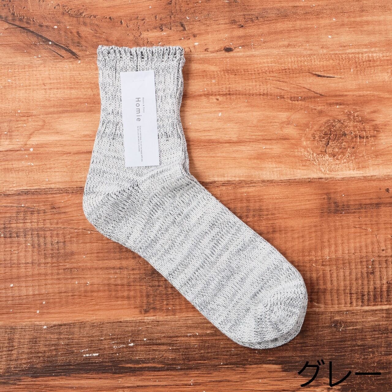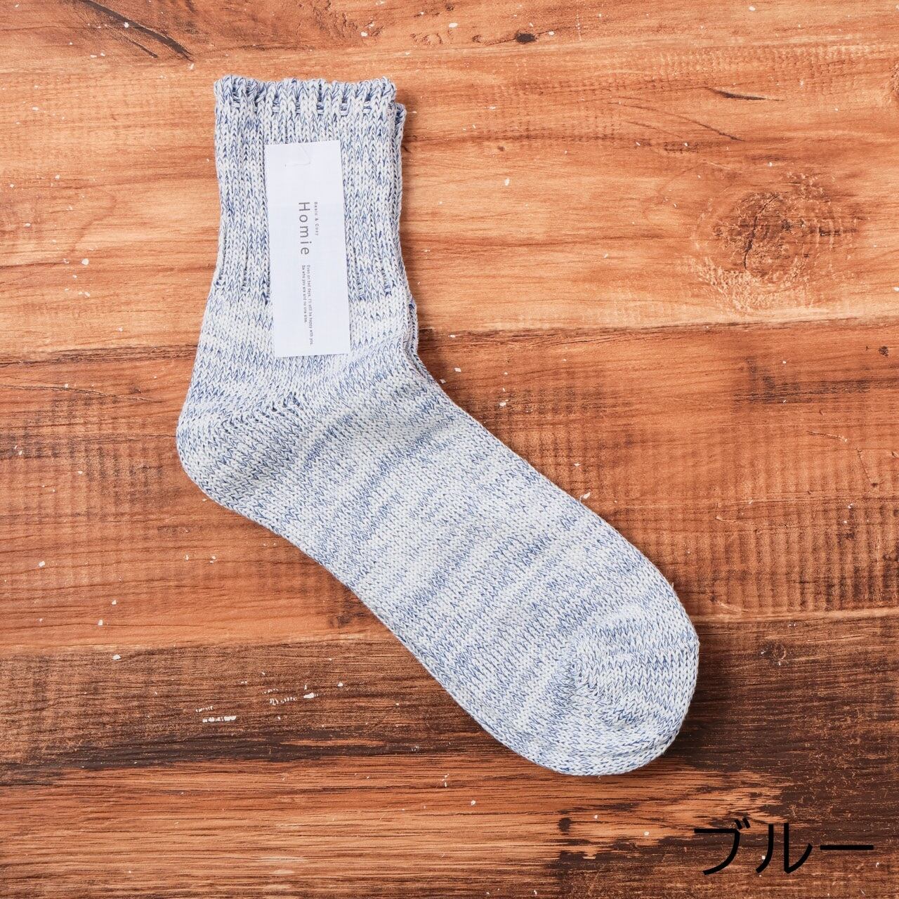 靴下 ソックス Homie ホミー コットン リネン プレーティングリブソックス ローゲージ レディース オールシーズン 綿 抗菌防臭 快適 日本製 クルー丈 22-24cm ギフト プレゼント H-078 Hm044