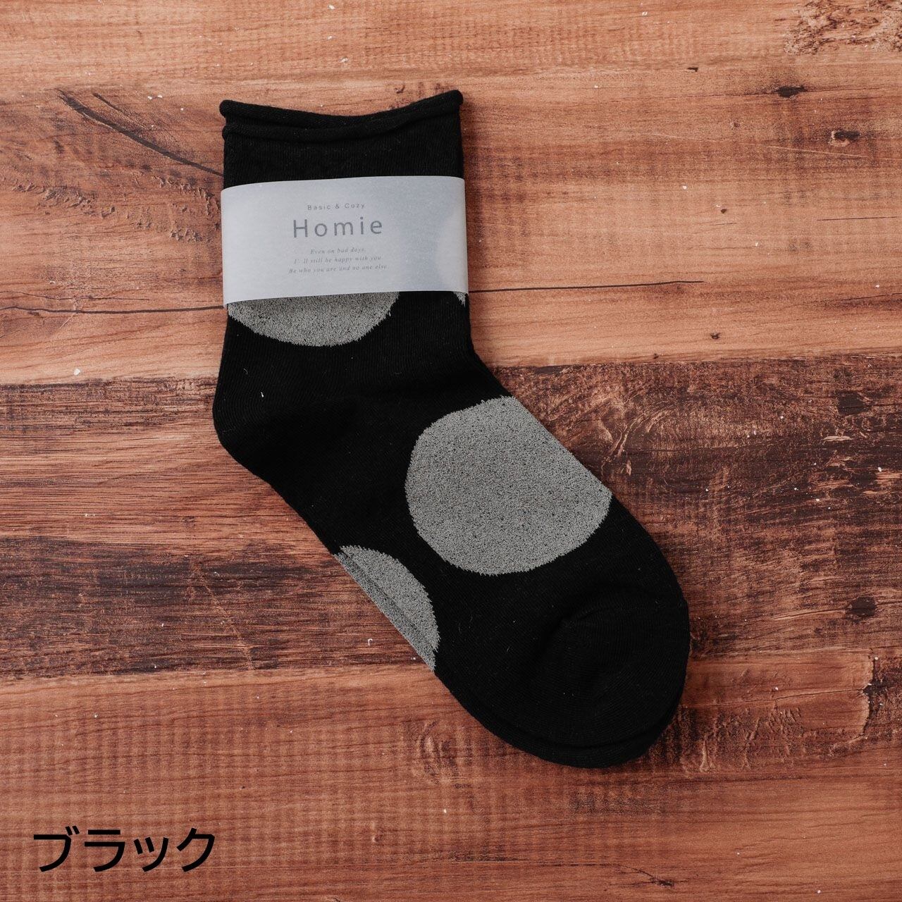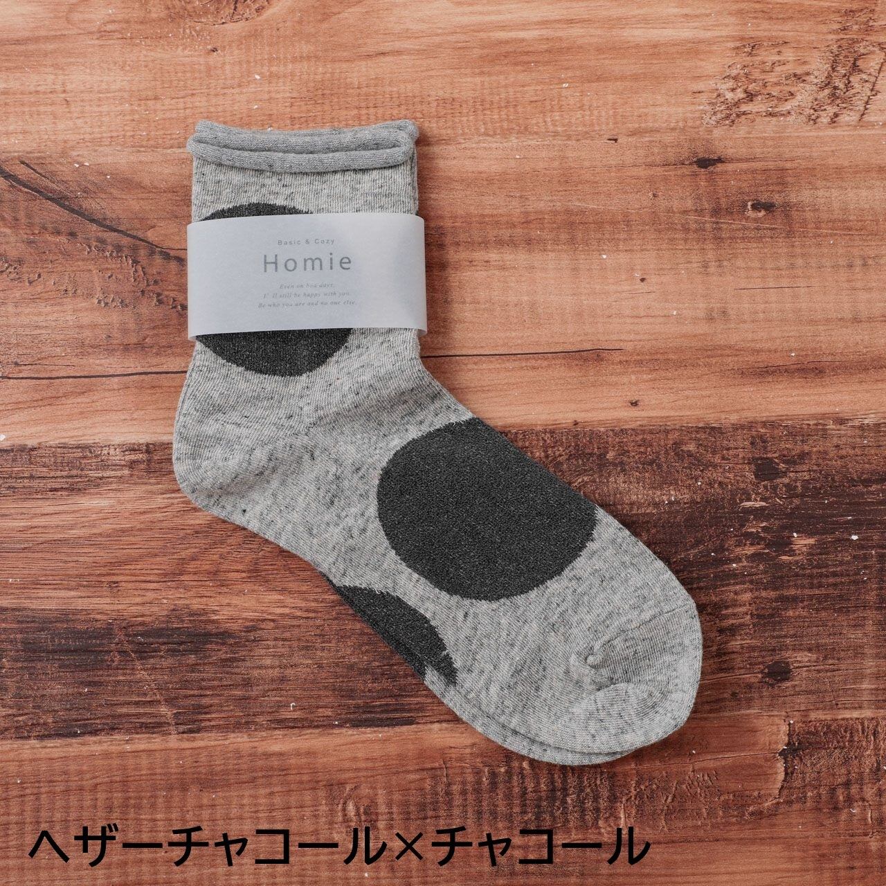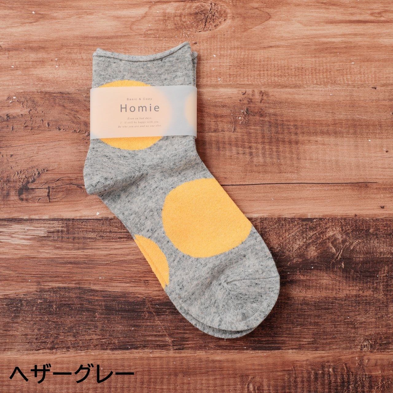 ホミー Homie 靴下 ソックス レディース H-037 ビッグドットショートソックス アンクル丈 おしゃれ かわいい コットン リネン 日本製 ギフト プレゼント フリーサイズ ホワイト グレー チャコール イエロー ブラック レッド Hm012