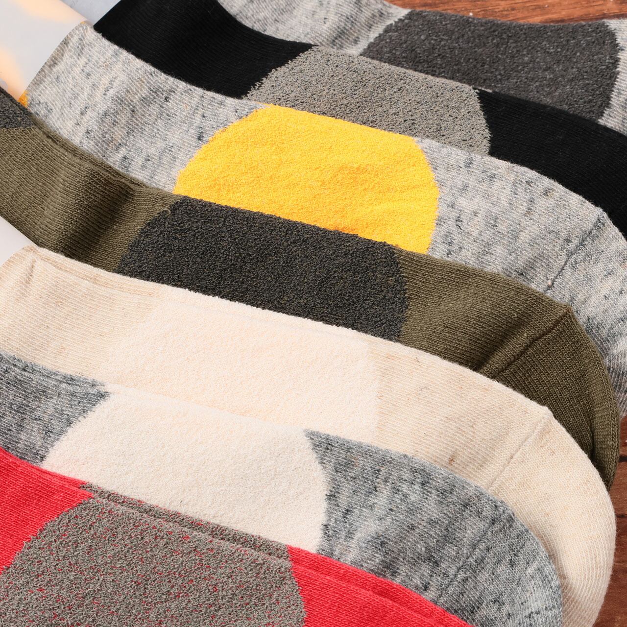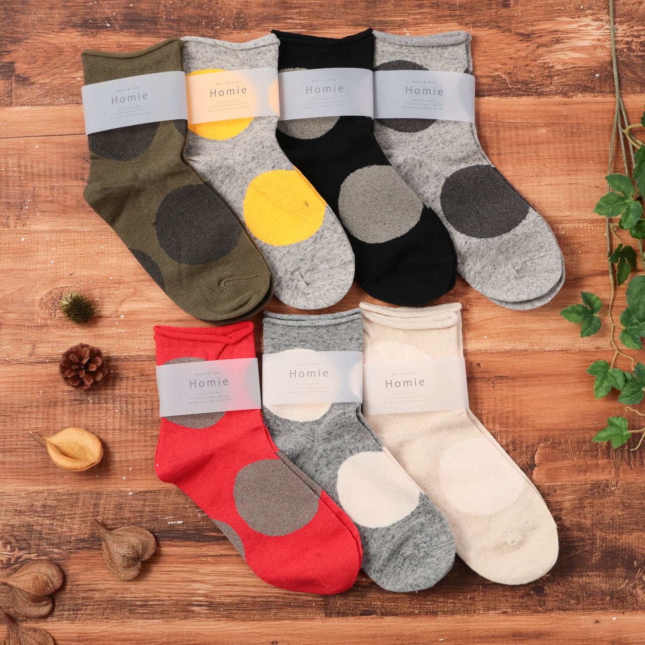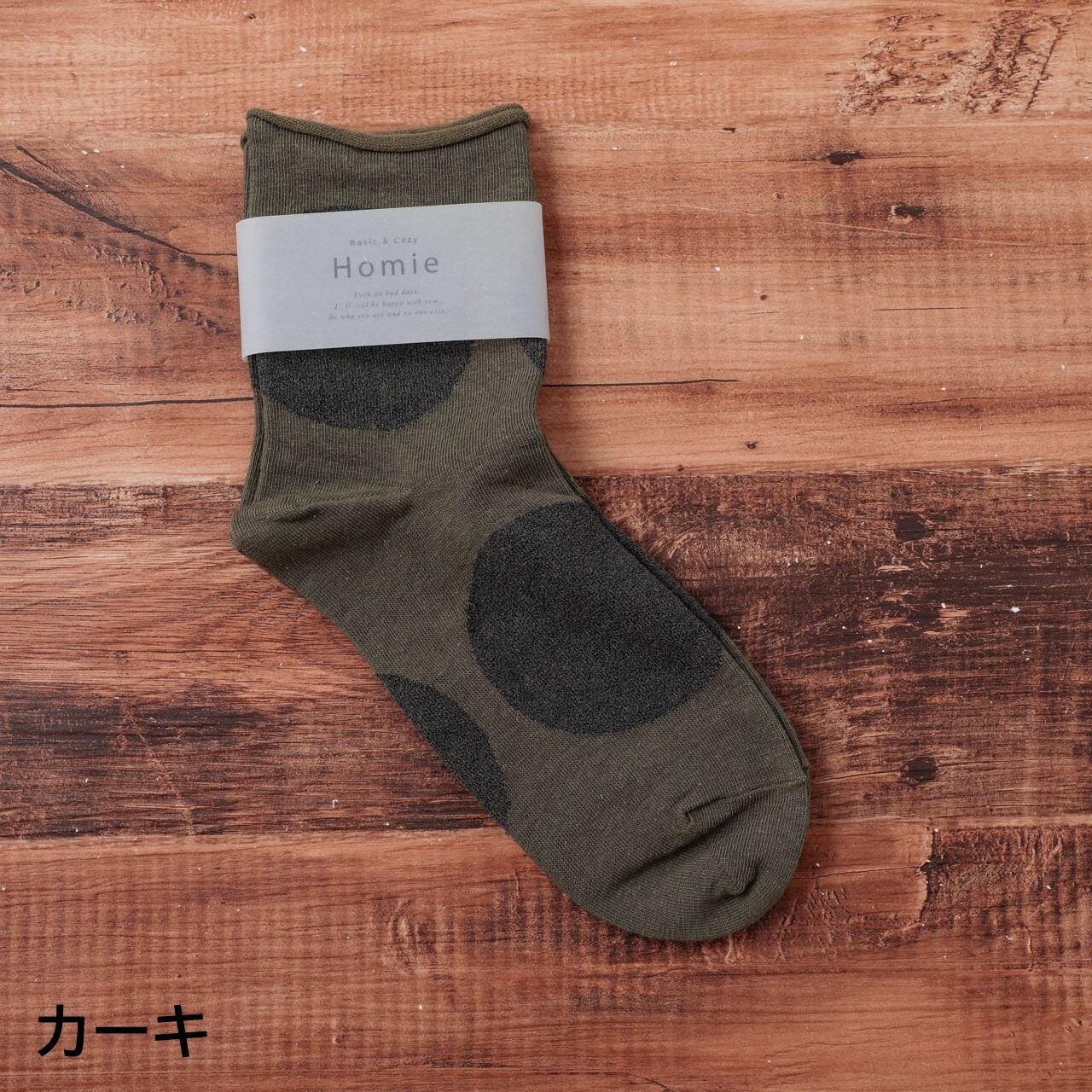 ホミー Homie 靴下 ソックス レディース H-037 ビッグドットショートソックス アンクル丈 おしゃれ かわいい コットン リネン 日本製 ギフト プレゼント フリーサイズ ホワイト グレー チャコール イエロー ブラック レッド Hm012