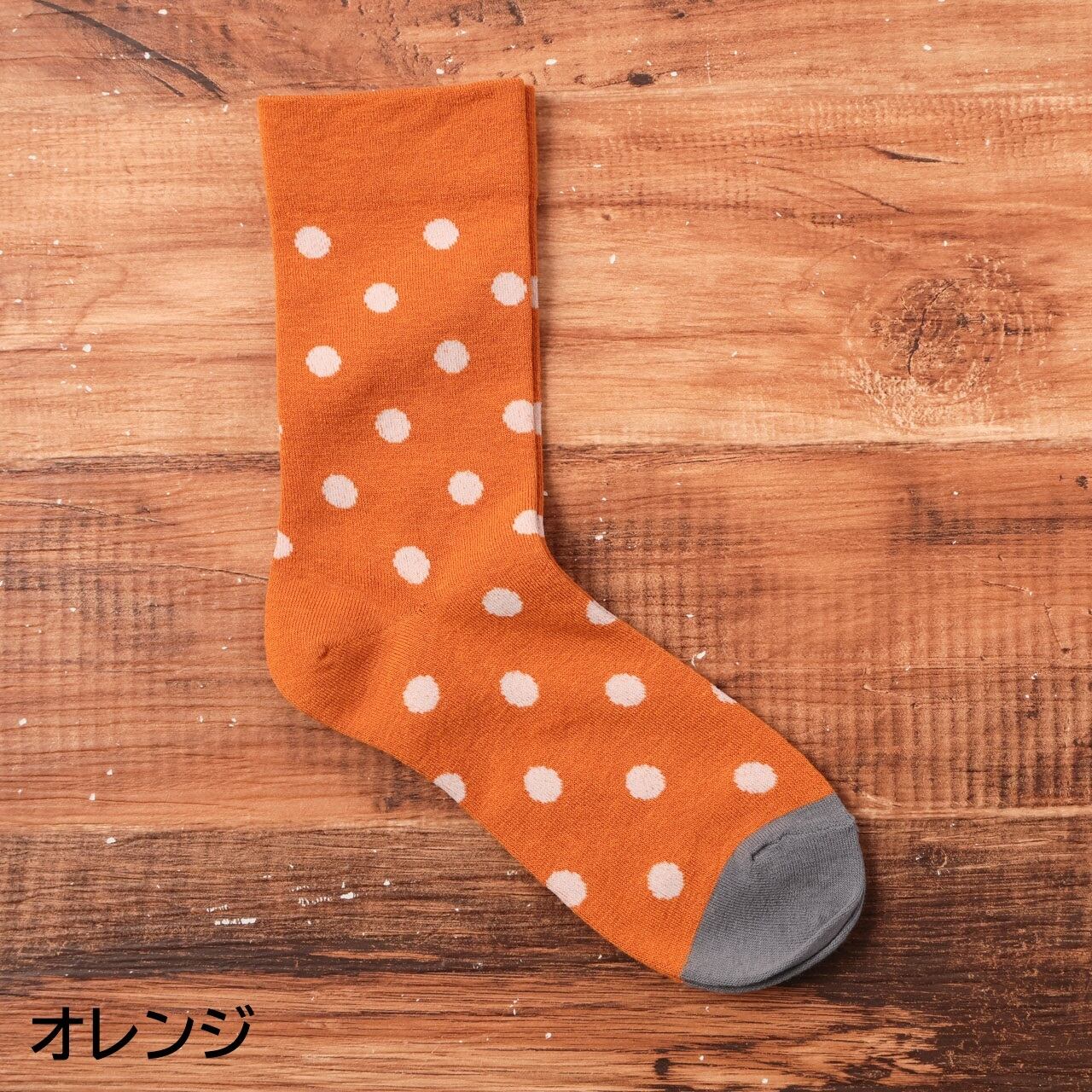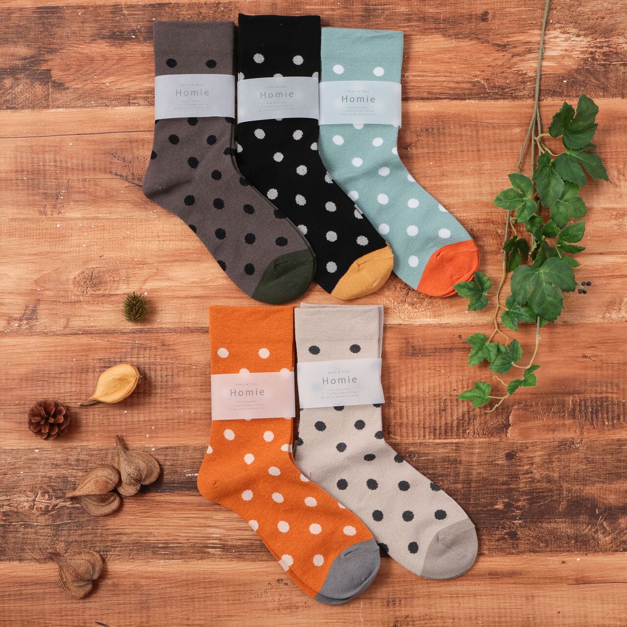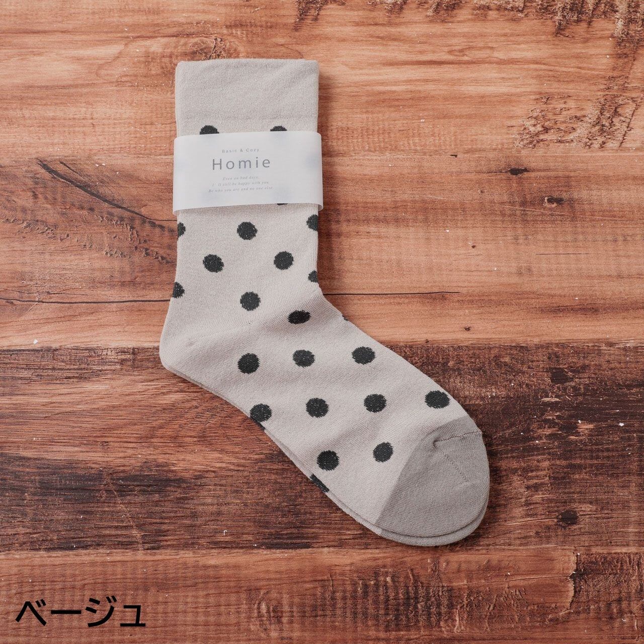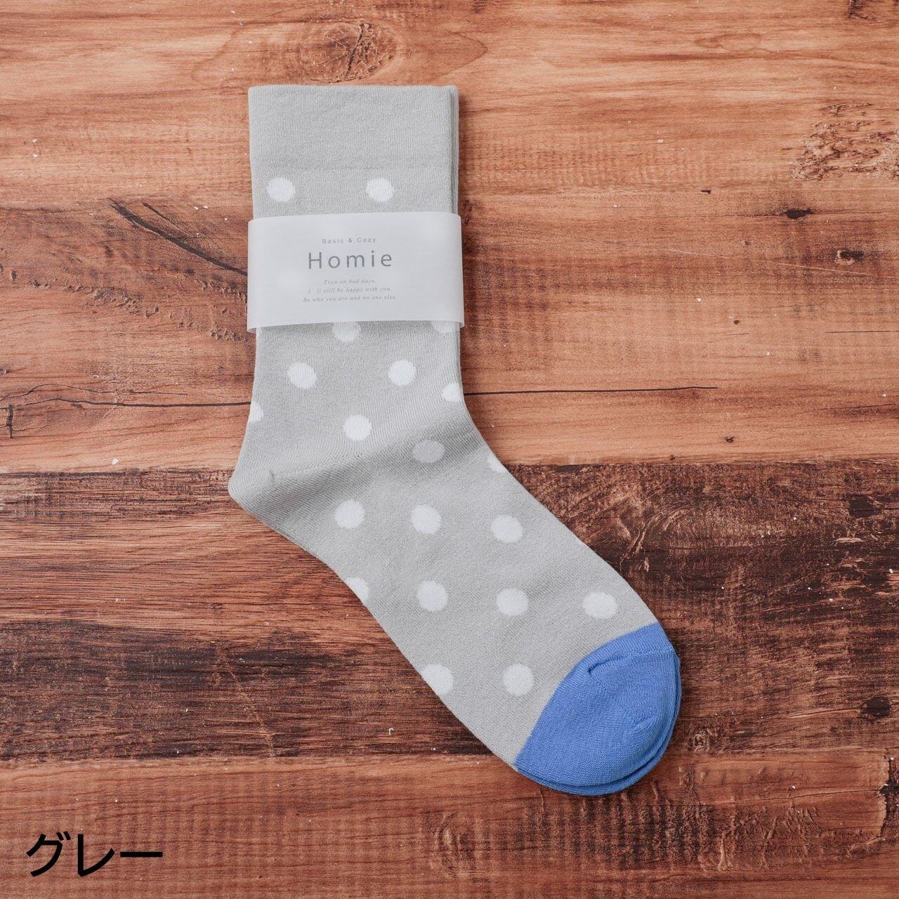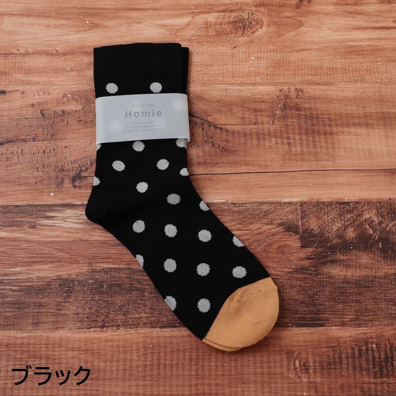 ホミー Homie 靴下 ソックス レディース H-064 コットンドットバイカラーソックス クルー丈 おしゃれ かわいい ゴムなし しめつけない 日本製 ギフト プレゼント 23-25 ブラック ミント グレー チャコール ベージュ オレンジ Hm013
