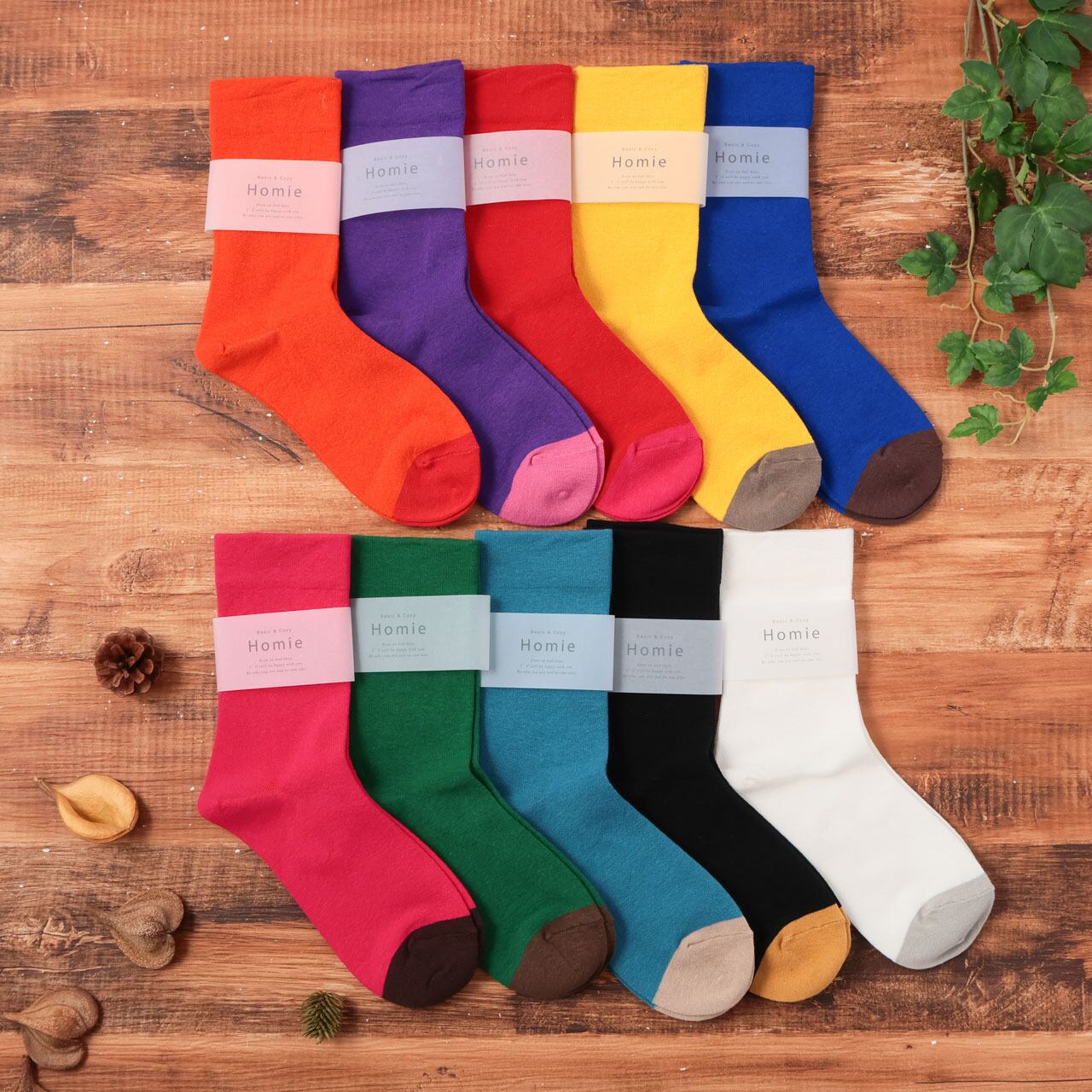 Homie ホミー 靴下 ソックス レディース H-020 コットンバイカラーソックス おしゃれ かわいい 日本製 ギフト プレゼント ブラック ブルー グリーン オレンジ ピンク パープル レッド ターコイズ イエロー ホワイト 23-25cm Hm001