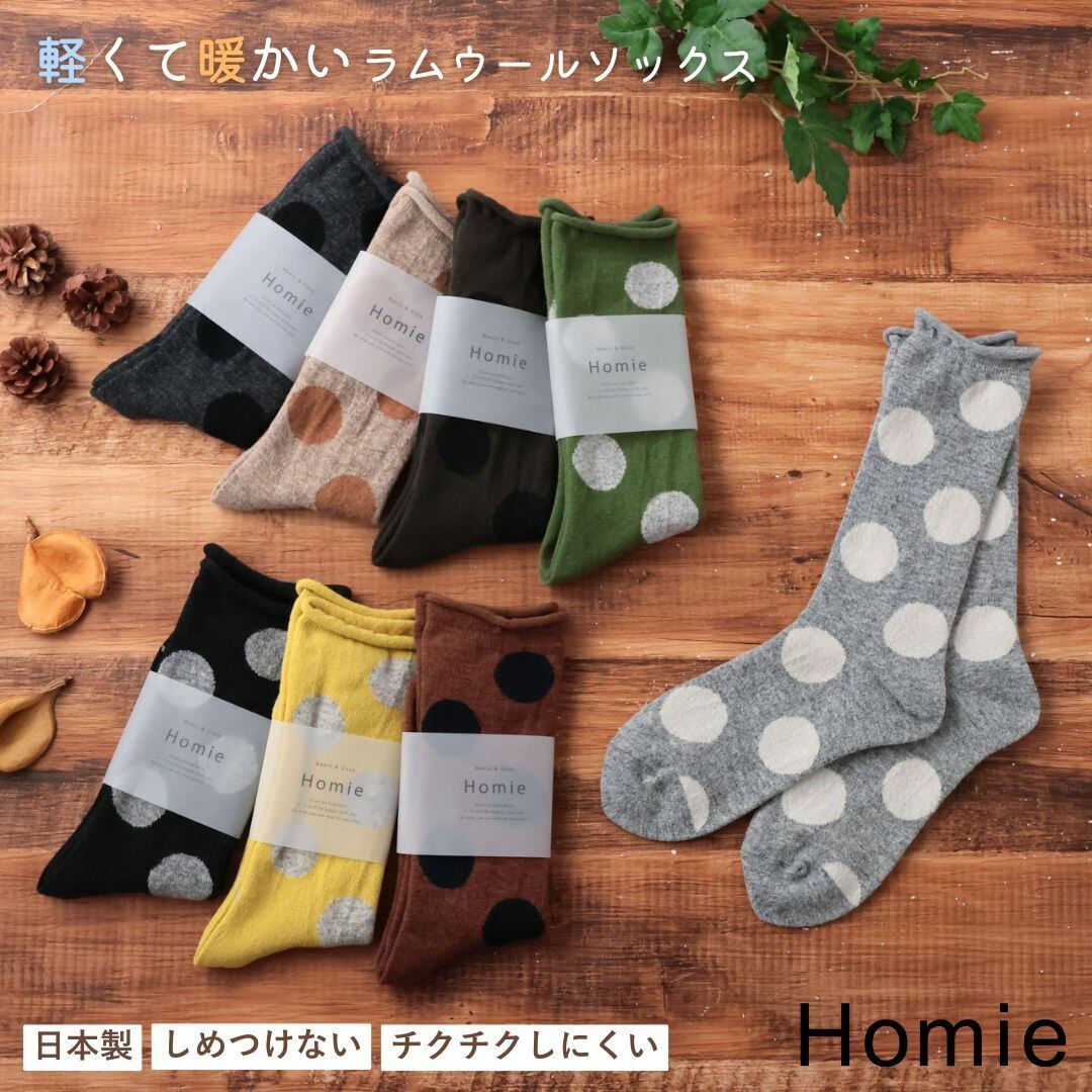 ホミー Homie 靴下 ソックス レディース ウール ビッグドットソックス ウール75% おしゃれ かわいい 暖かい 日本製 ギフト プレゼント 23-25 H-034 Hm016