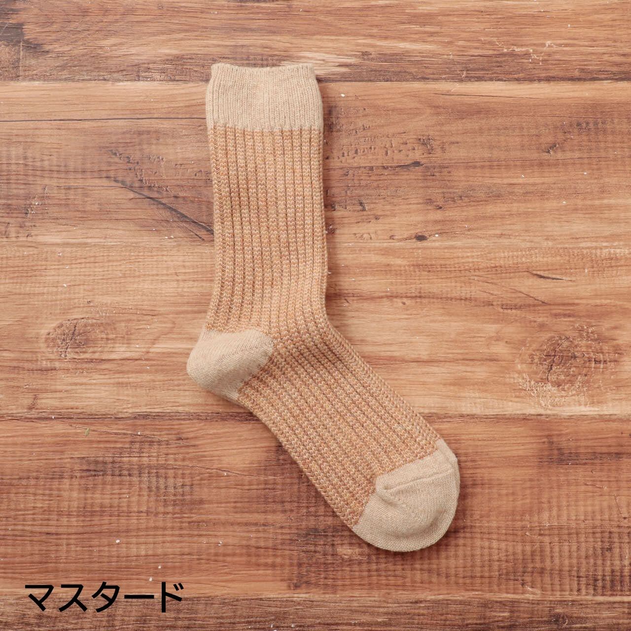 ウール・ナイロンなどの混績糸を使用し、ふんわりと優しい履き心地。程よいボリューム感で革靴やスニーカーとも相性が良く、秋冬の足元を彩ります。