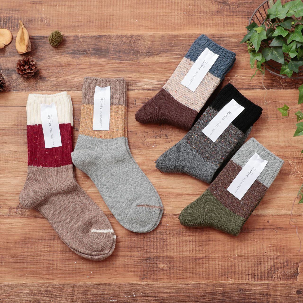 ホミー Homie レディース ウールミックス スウィッチング ネップソックス おしゃれ かわいい 暖かい 日本製 ギフト プレゼント 靴下 ソックス 23-25 H-060 ブラウン/チャコール/グリーン/ライトグレー/モカ Hm020