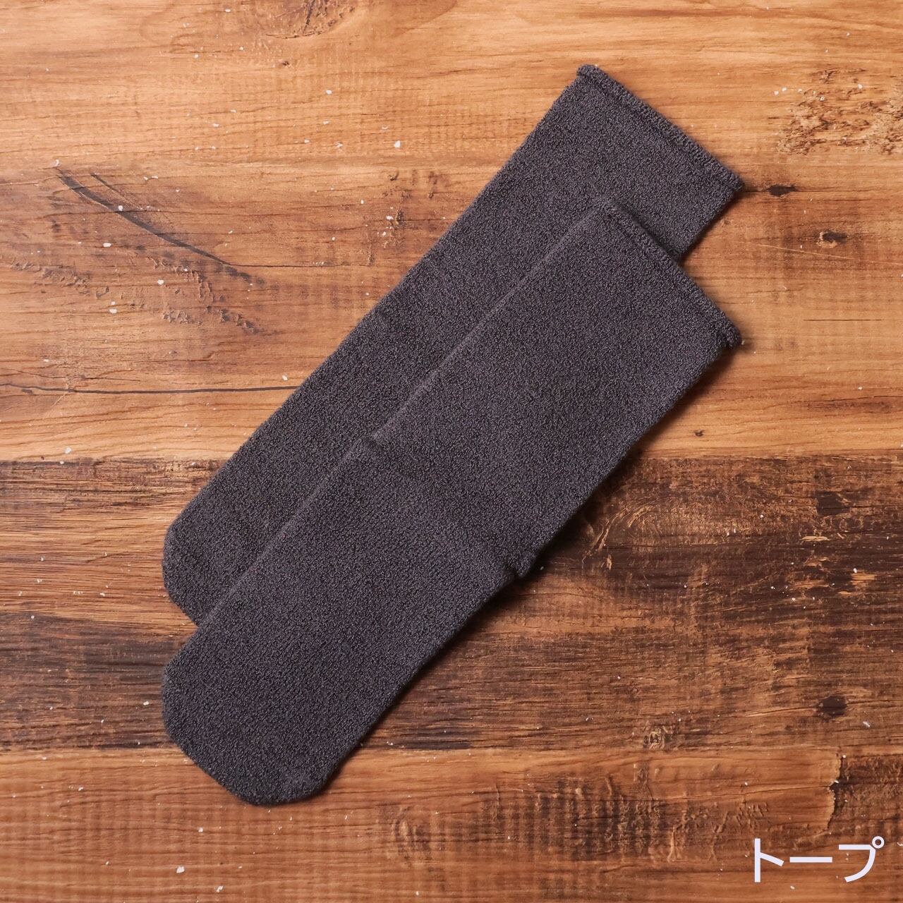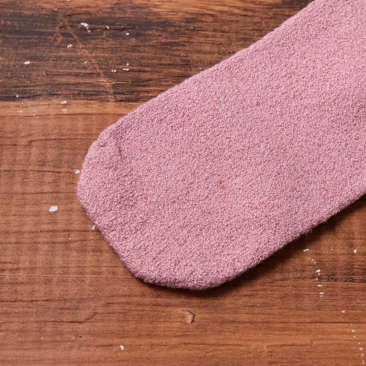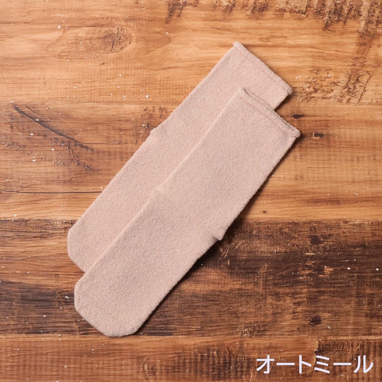 肌に触れる部分はシルク100%。履き口にもゴムを使用していないため、お風呂上がりにやさしく足元を包みます。
