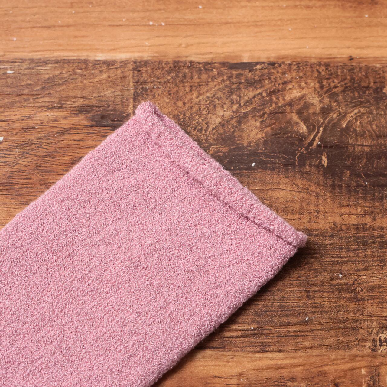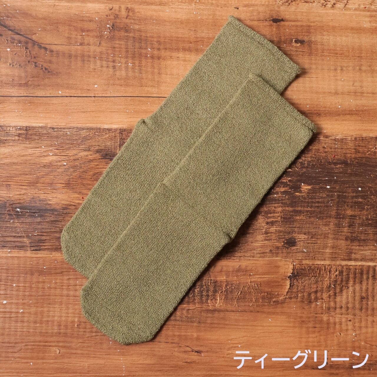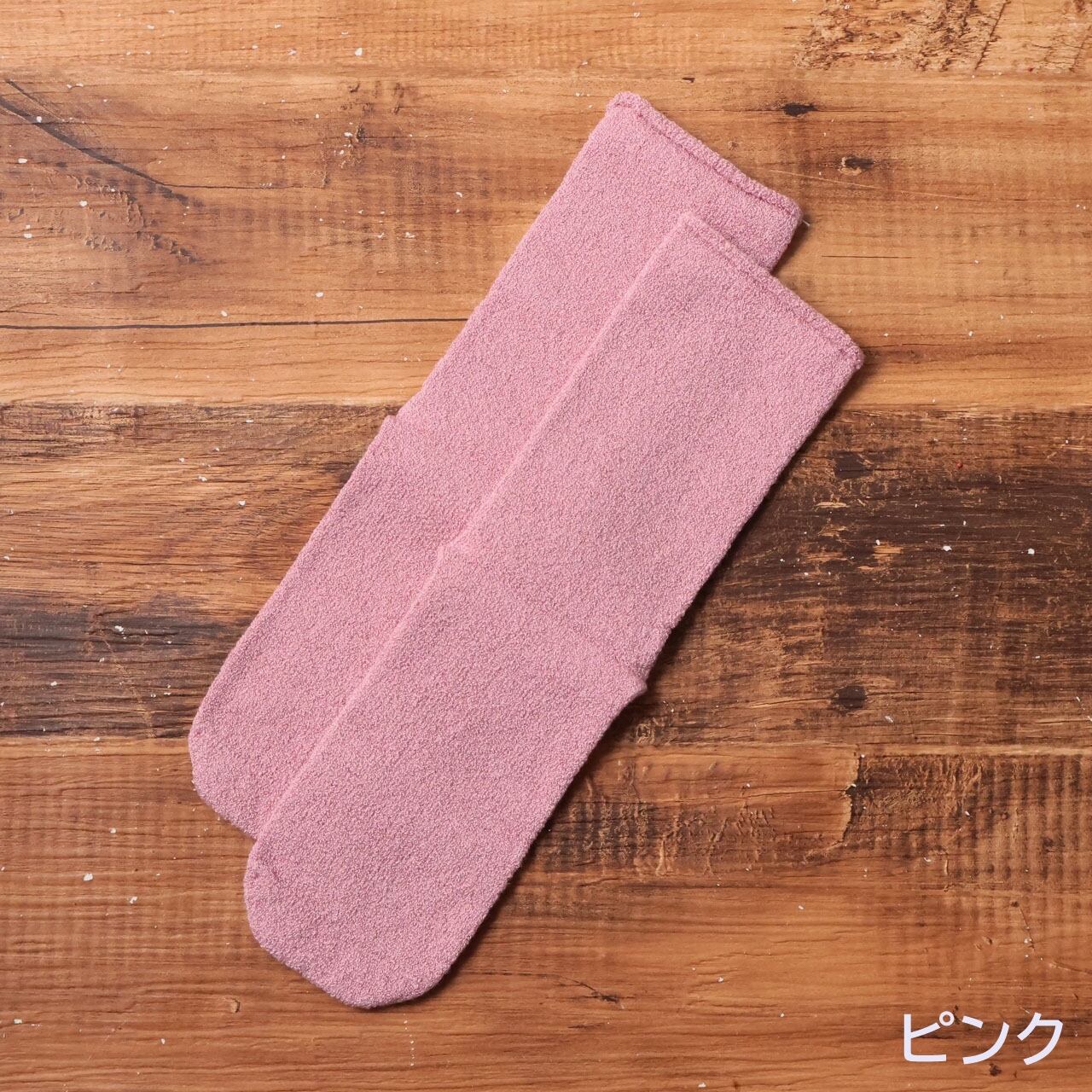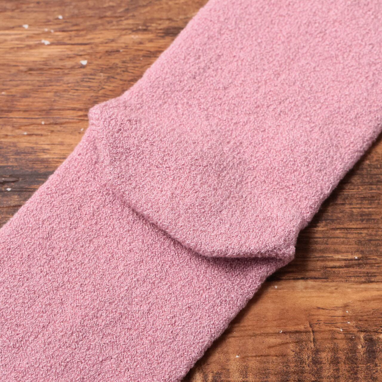 肌に触れる部分はシルク100%。履き口にもゴムを使用していないため、お風呂上がりにやさしく足元を包みます。