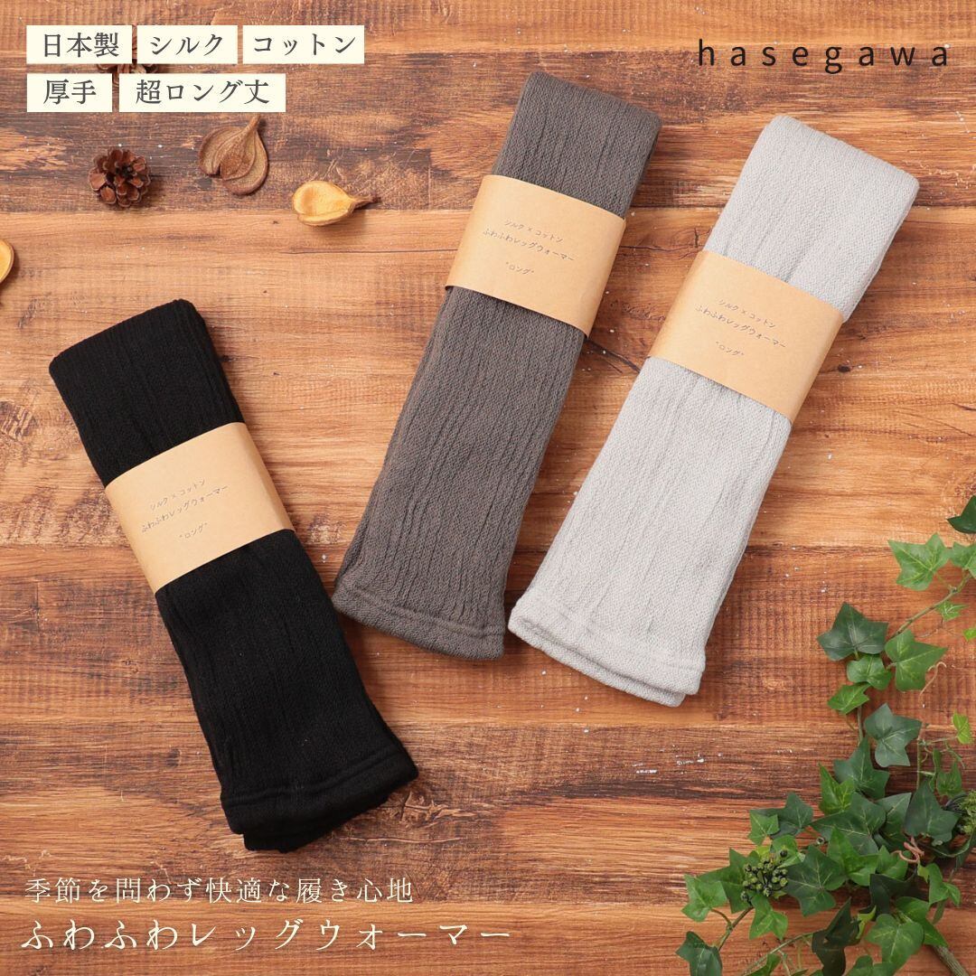 ふわふわレッグウォーマー レッグウォーマー HASEGAWA SILK ロング シルク コットン 絹 綿 日本製 防寒対策 冷房対策 天然繊維 ストレスフリー かわいい おしゃれ プレゼント ギフト ブラック チャコール グレー 長谷川商店 LE0365 Hs018