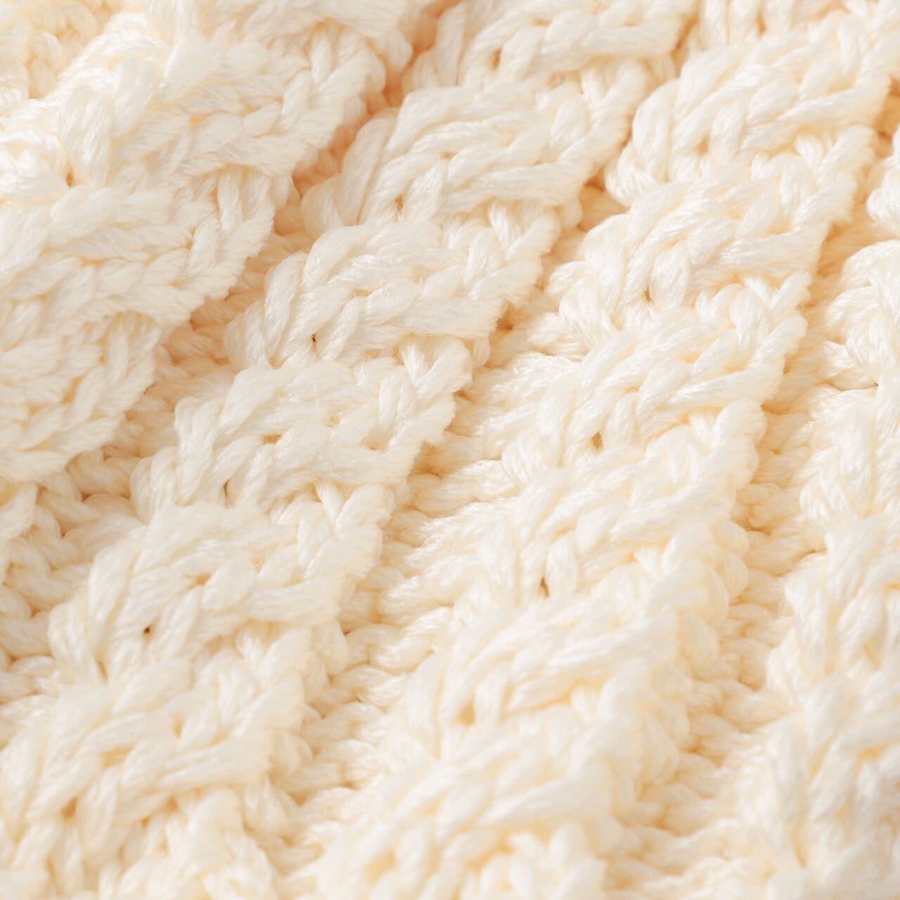 立体的なケーブル模様が、独特な糸の表情を際立たせ、大人のキレイめカジュアルな装いに合います。