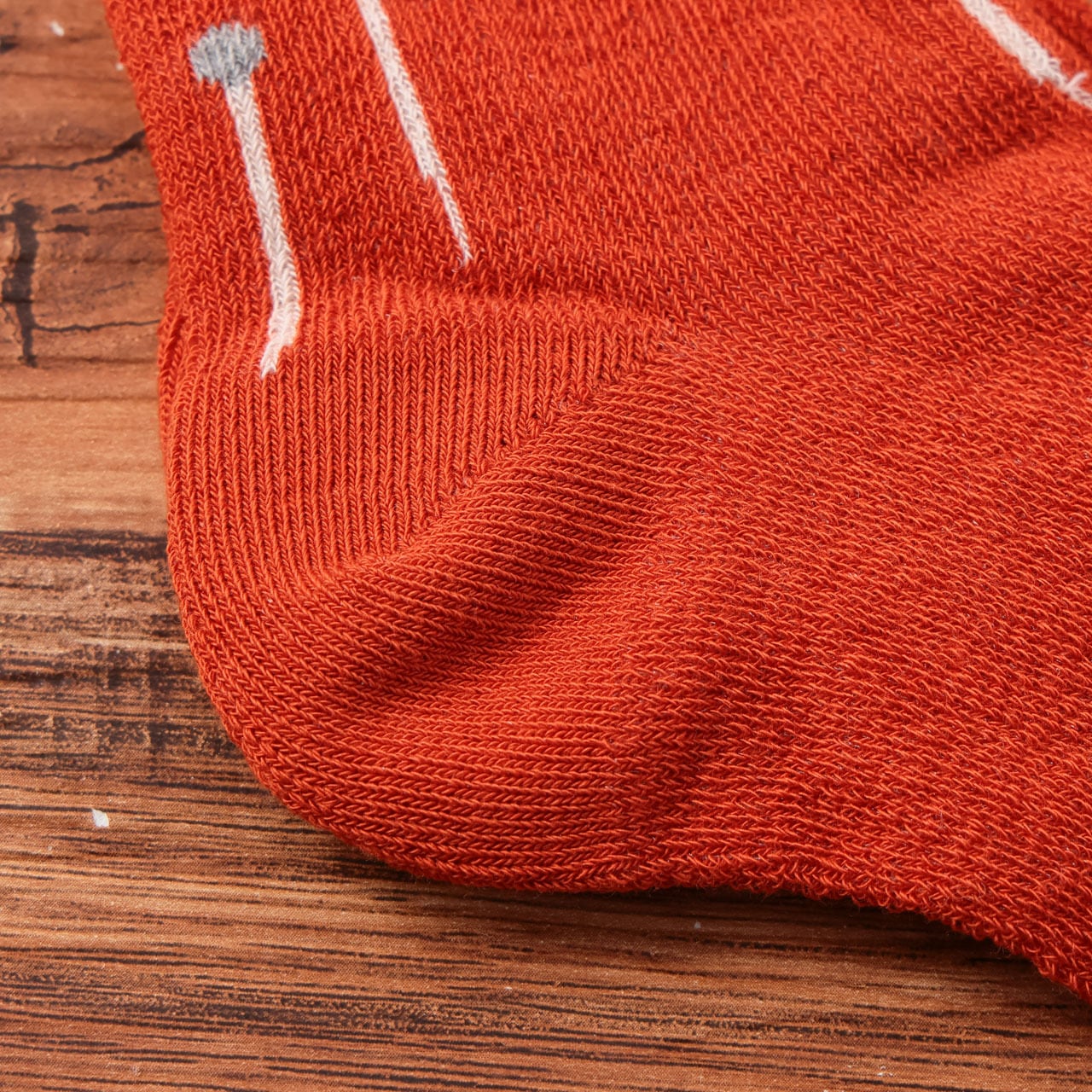 普通のくつしたより細い糸をたっぷり使い、大き目に編み立てたくつしたを蒸気にかけて縮めているため、