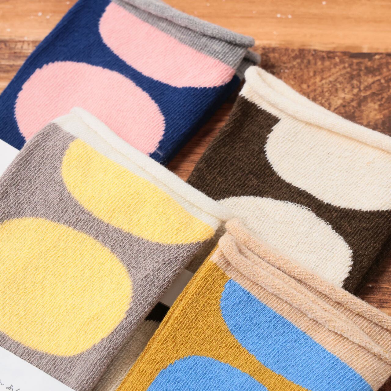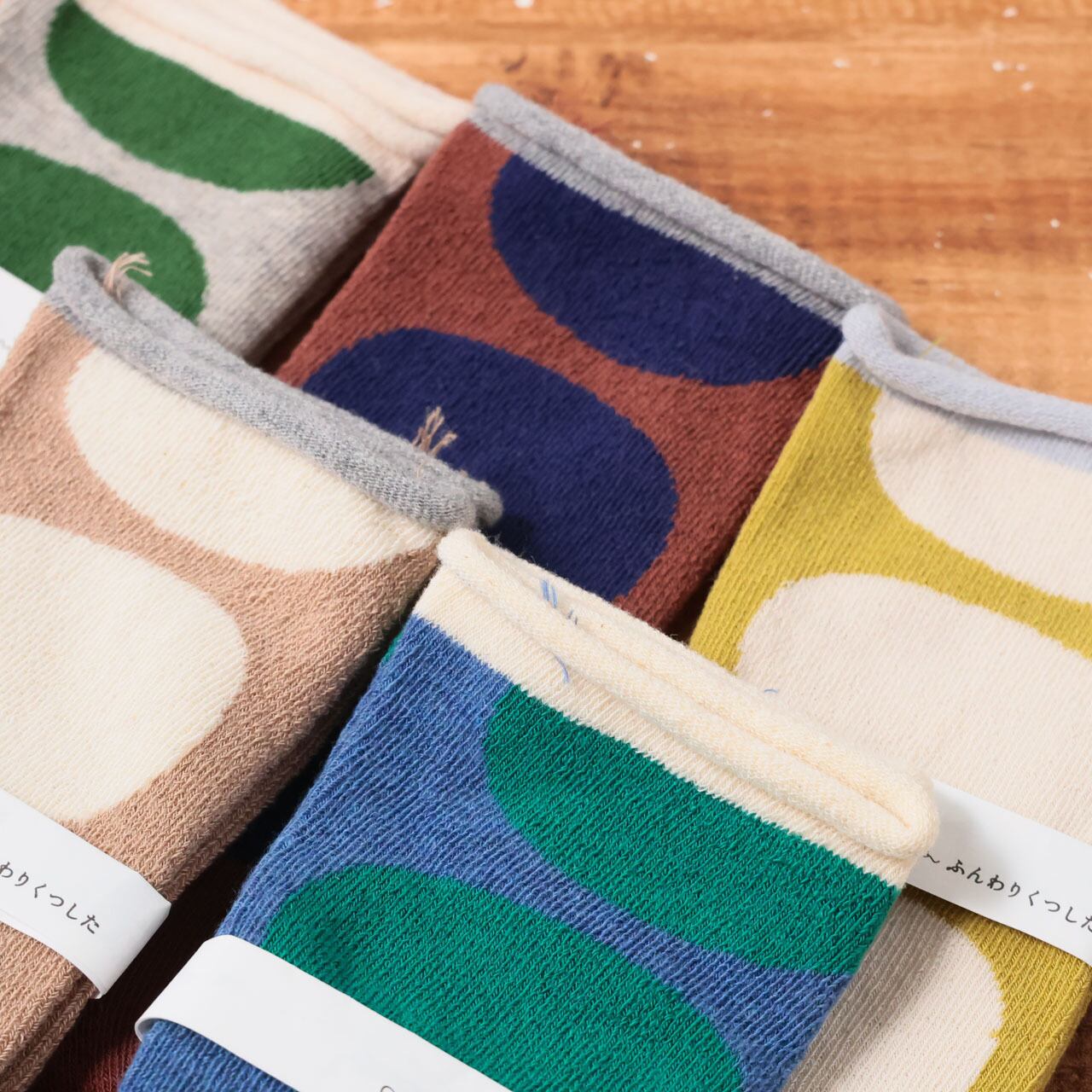 “昔ながらのゆっくり編み”で、素材も手間も時間もたっぷりかけてつくる「ふんわりくつした」は、ゴムが入っていないのでしめつけ感がなく、ふんわりとした履き心地です。