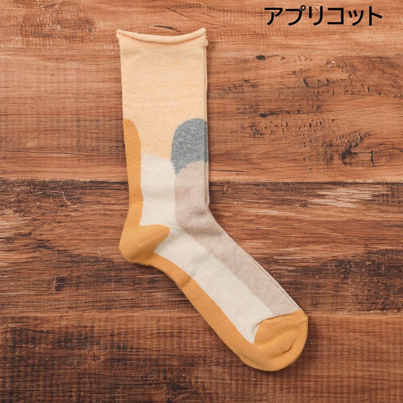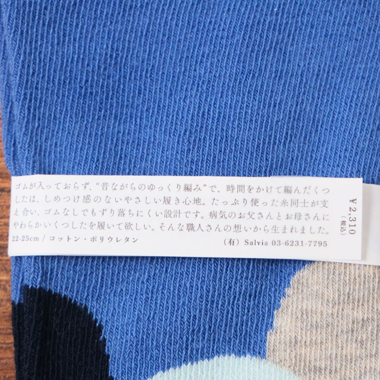 “昔ながらのゆっくり編み”で、素材も手間も時間もたっぷりかけてつくる「ふんわりくつした」は、ゴムが入っていないのでしめつけ感がなく、ふんわりとした履き心地です。