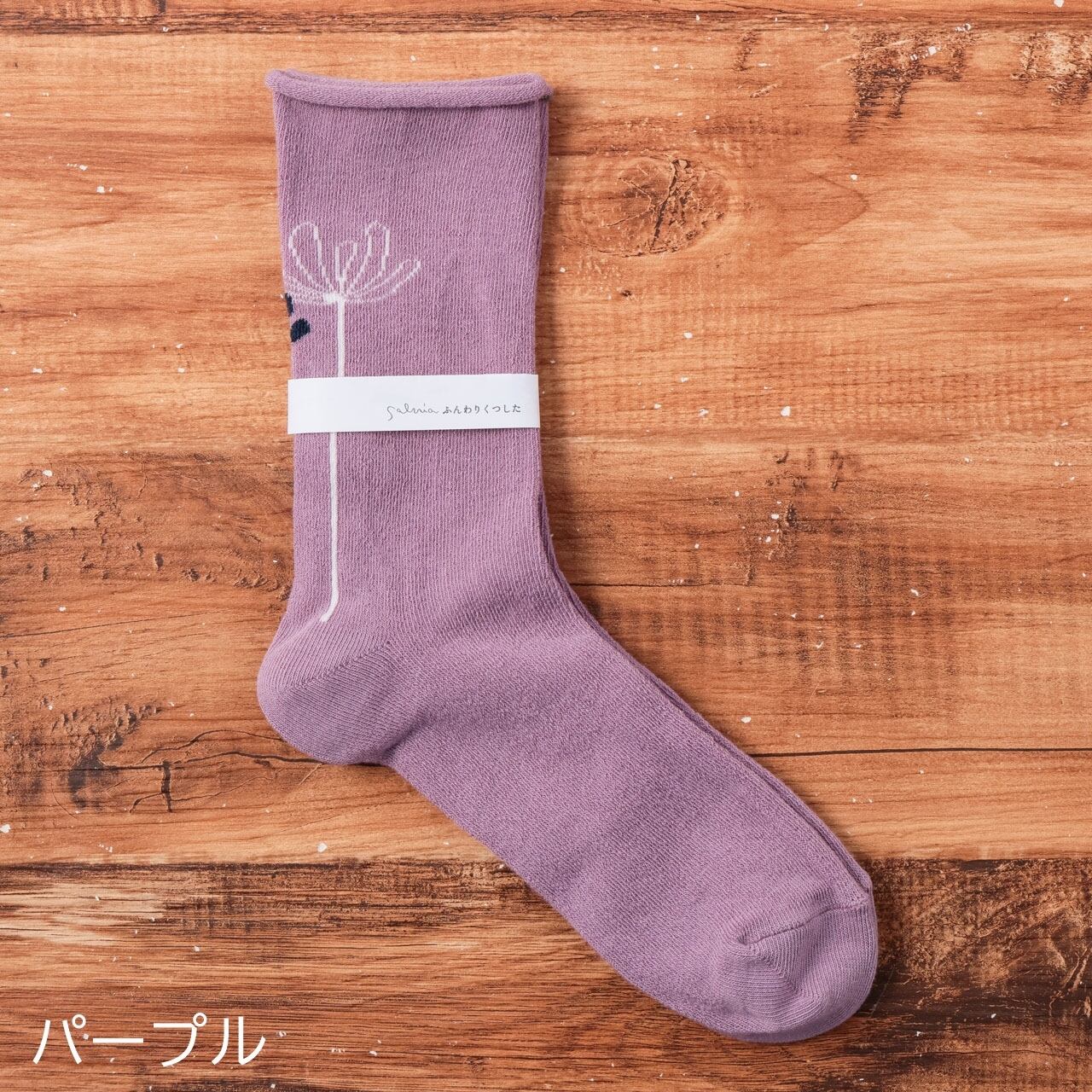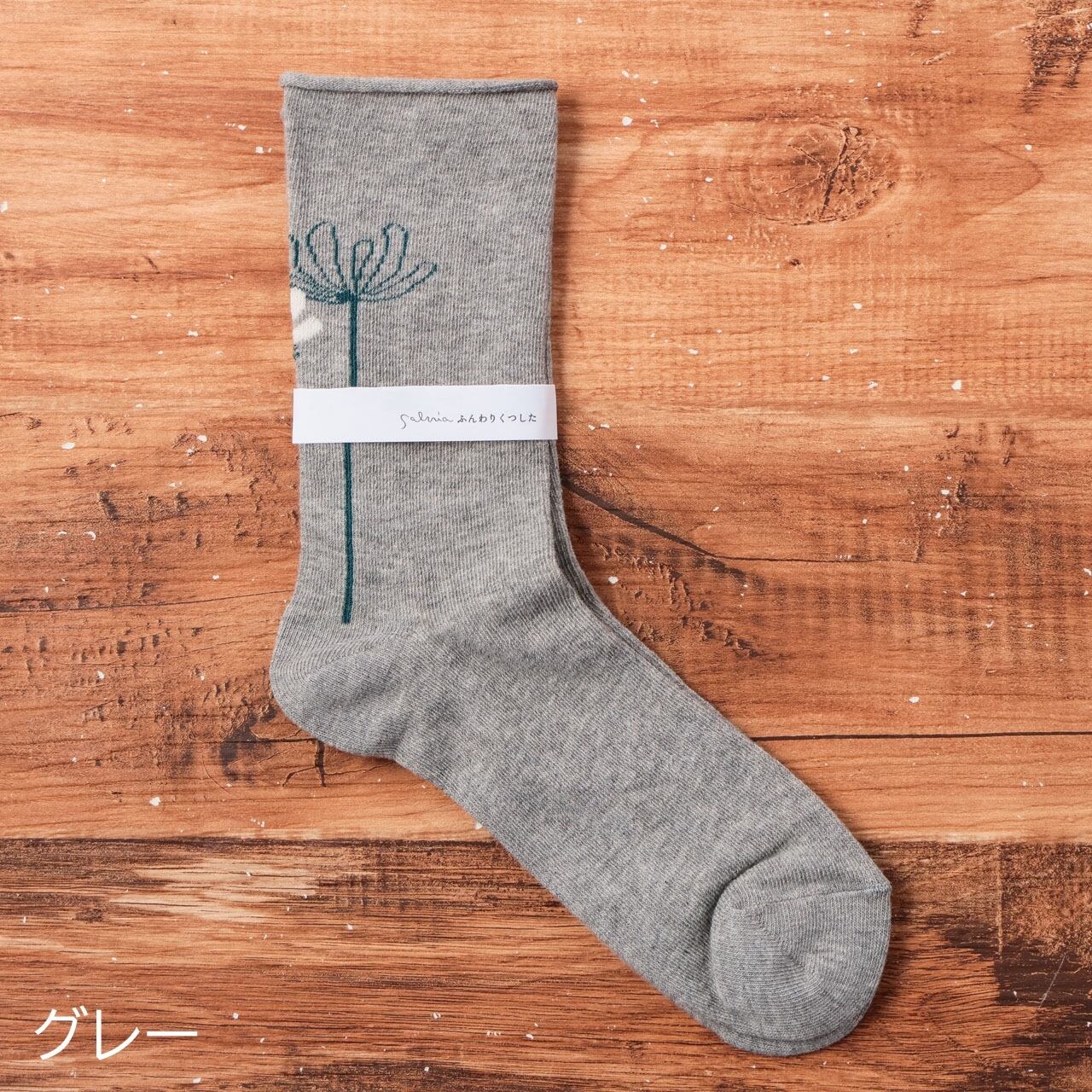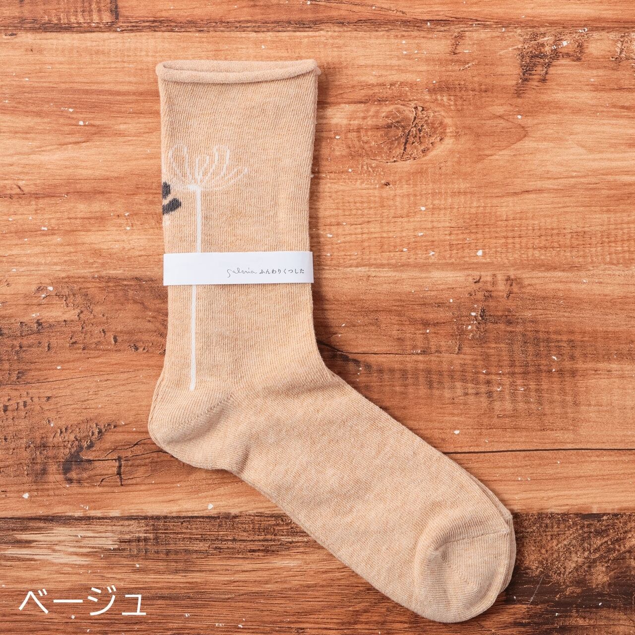 サルビア salvia 靴下 ソックス レディース ふんわりくつした コスモス コットン ゴムなし おしゃれ かわいい ナチュラル しめつけない 日本製 ギフト プレゼント グレー ベージュ パープル レッド グリーン 22-25cm Sv009