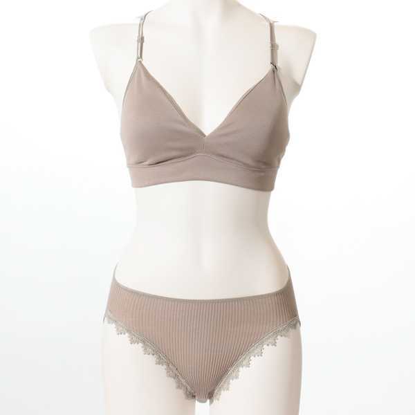 トップスお揃いで着用していただけます。サイドに縫い目のない仕様なのでゴロつかず肌に優しくフィットします。脚繰りにトリミングされた繊細なケミカルレースは洗練された大人の女性の印象を与えます。