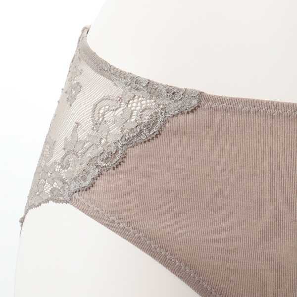 アロマティック AROMATIQUE レディース ショーツ インナーウェア コットン 綿 レース リバーレース サイドレース 締め付けない 日本製 プレゼント ギフト おしゃれ M L アッシュ グレージュ E713AR At013