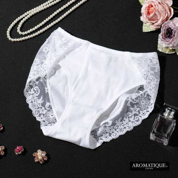 アロマティック AROMATIQUE レディース ショーツ インナーウェア コットン 綿 レース リバーレース サイドレース 締め付けない 日本製 プレゼント ギフト おしゃれ M L ホワイト 白 E713AR At012