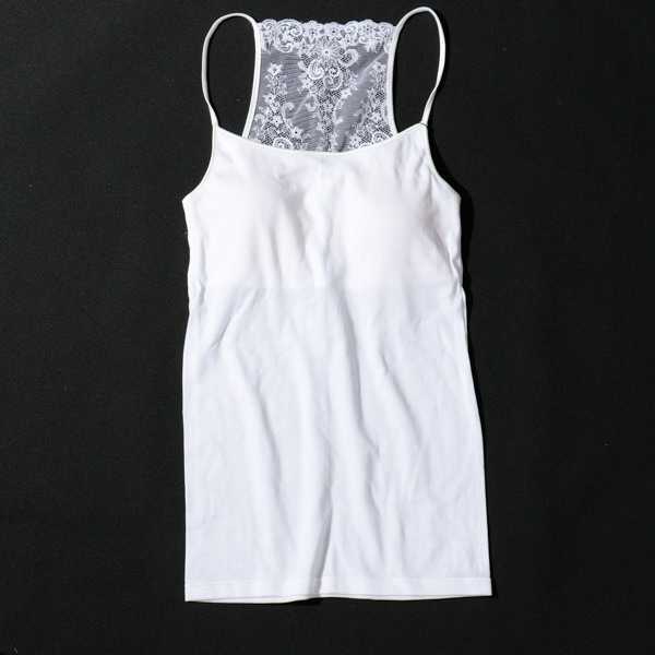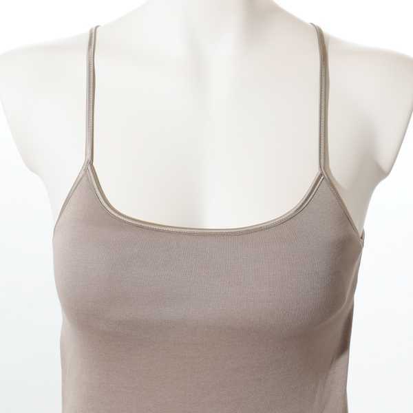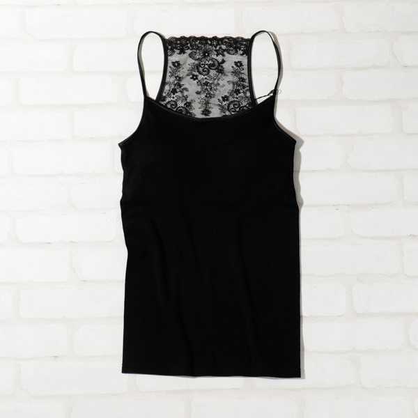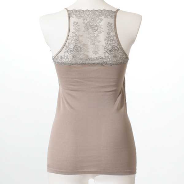 上品な光沢感あるコットン生地とハイバックに華やかなリバーレースがアクセントにデザインされたカップ付(取外し可能)キャミソールです。レイヤード感覚でアウターから少し見えるレースが女性らしさを演出し、OnでもOffでも楽しめます。