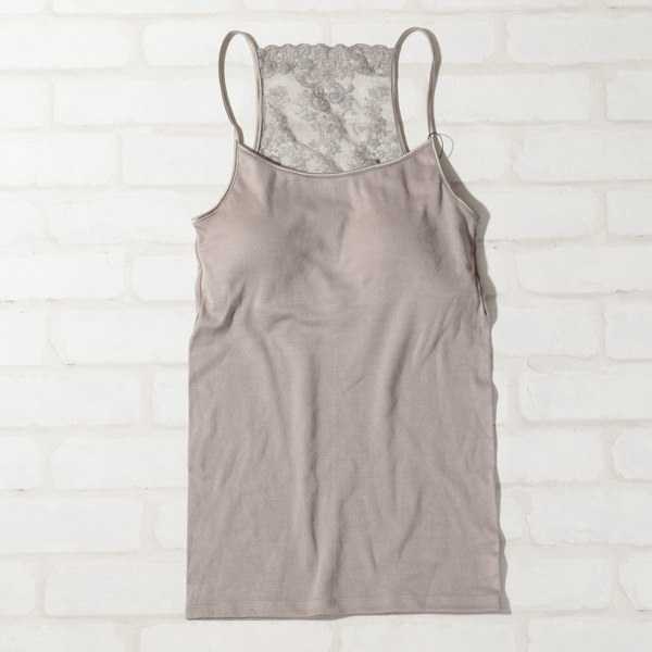アロマティック AROMATIQUE レディース インナーウェア パッド入りキャミソール キャミ レース リバーレース おしゃれ 背中レース コットン 日本製 ブランド ギフト プレゼントアッシュグレー R057AR At008