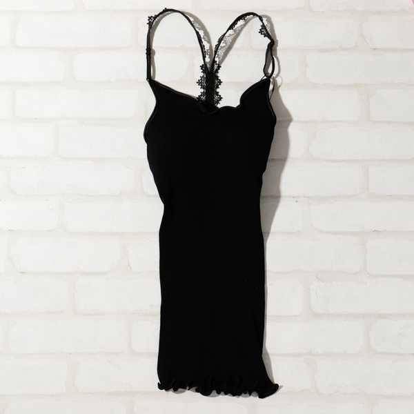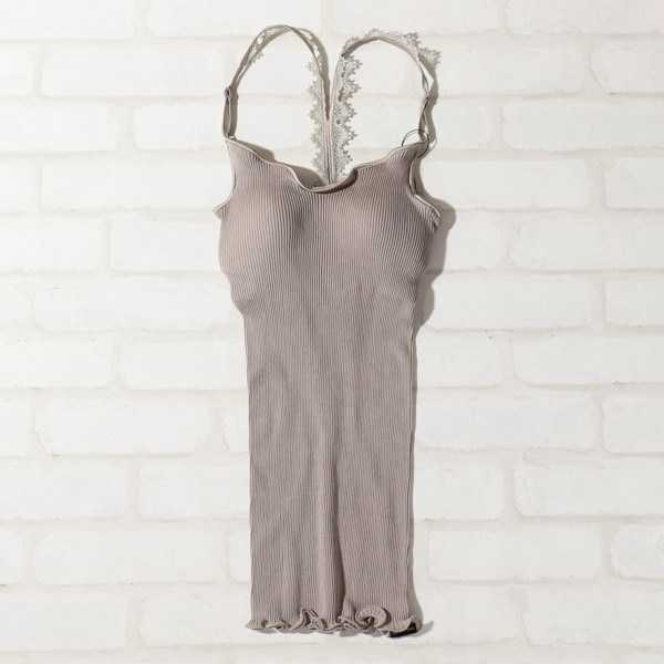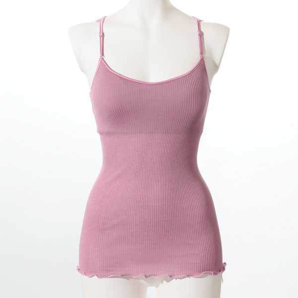 上品な光沢感あるコットン糸をアコーディオンリブで編み上げたキャミソールです。