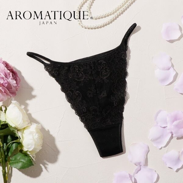 アロマティック AROMATIQUE ソング タンガ ショーツ Tバック レディース インナー 下着 レース セクシー コットン 綿 コットン100% 日本製 国産 かわいい ギフト プレゼント 黒 M L E663AR At017 ブラック