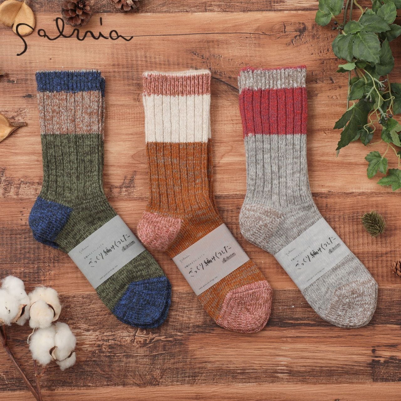 サルビア salvia 靴下 ソックス レディース ざっくり編みくつした 杢ウール ショート ローゲージ ブランド 日本製 秋 冬 暖かい ギフト プレゼント 22-25cm ブルー ライトグレー ピンク Sv001