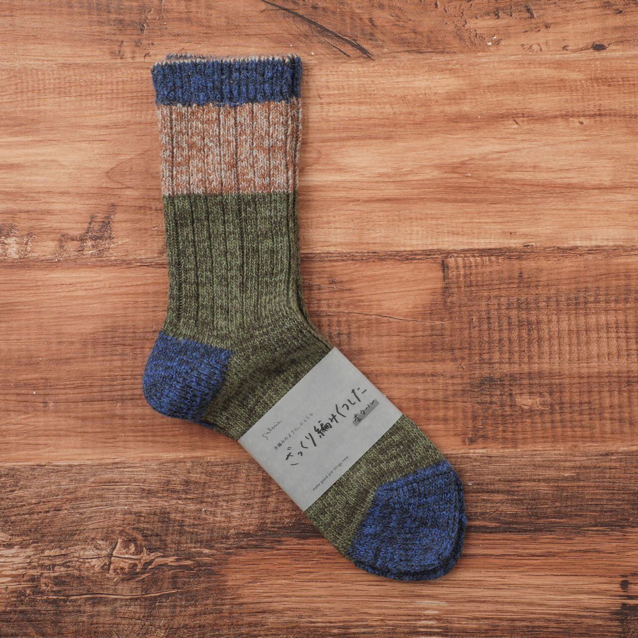 ローゲージ編みのやわらかなショート丈の靴下です。