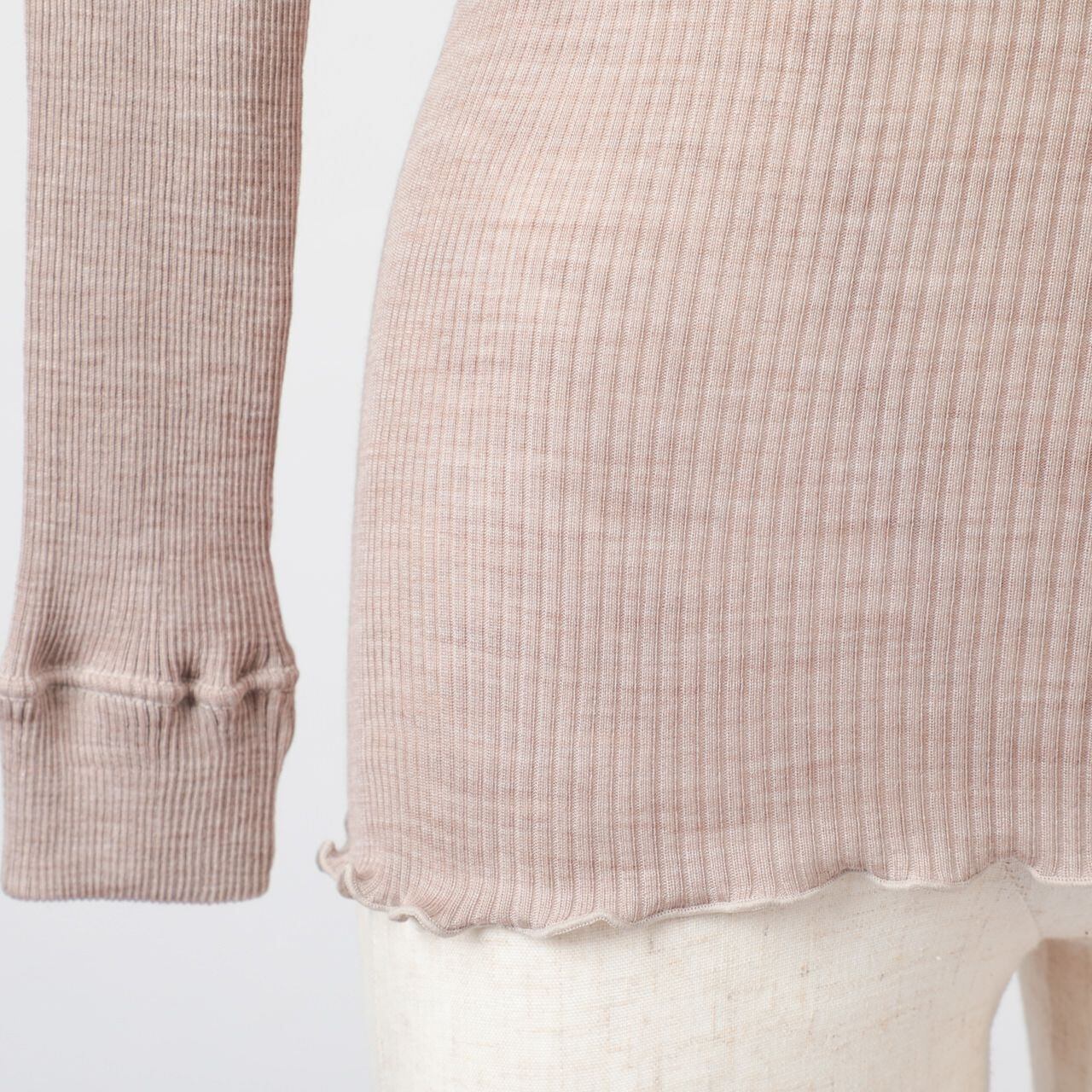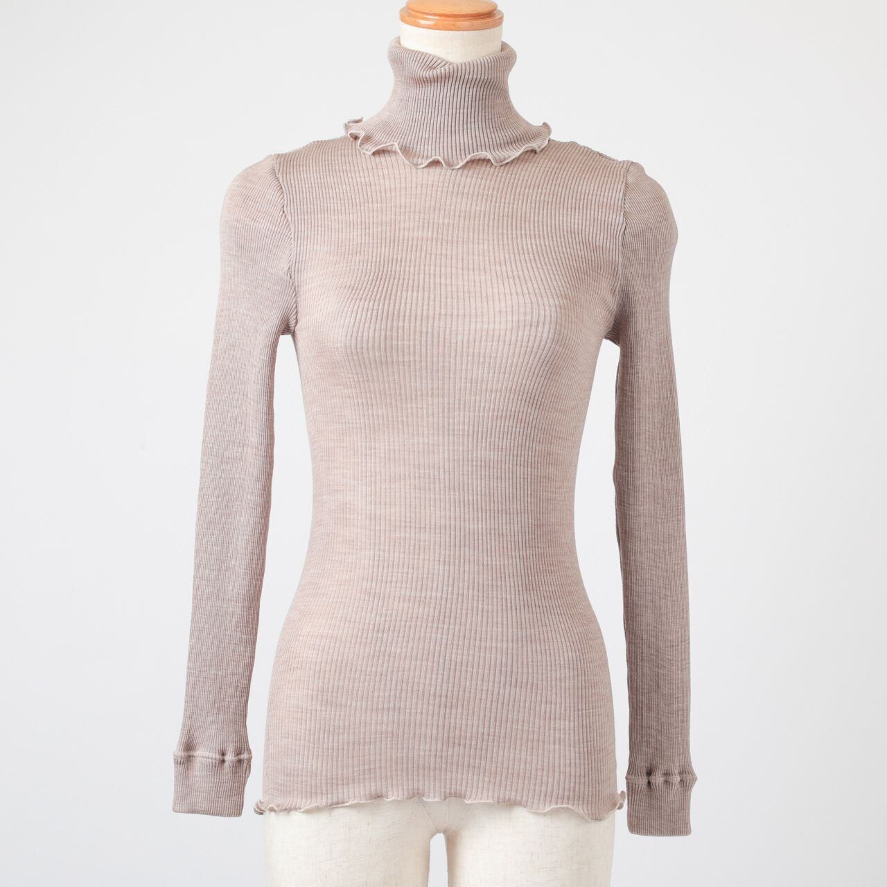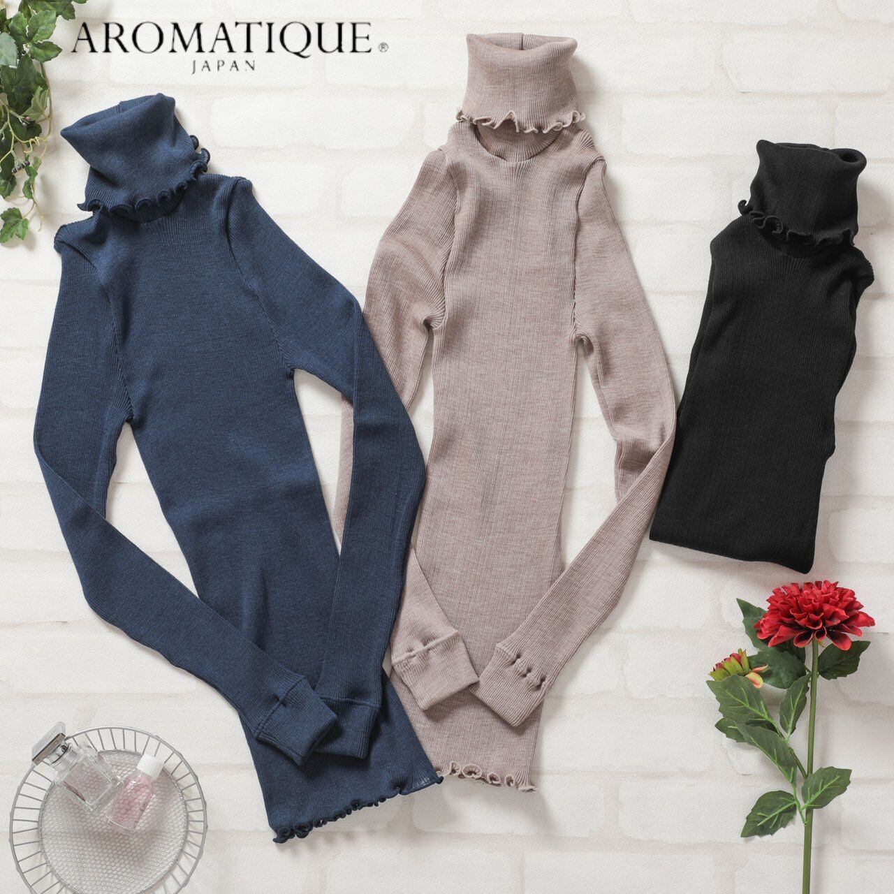 アロマティック AROMATIQUE ロングスリーブ 長袖 インナー レディース ハイネック ウール シルク 絹 リブ 温かい 暖かい 秋 冬 日本製 やわらか ギフト プレゼント M L ブラック グレージュ ネイビー J793AR At022