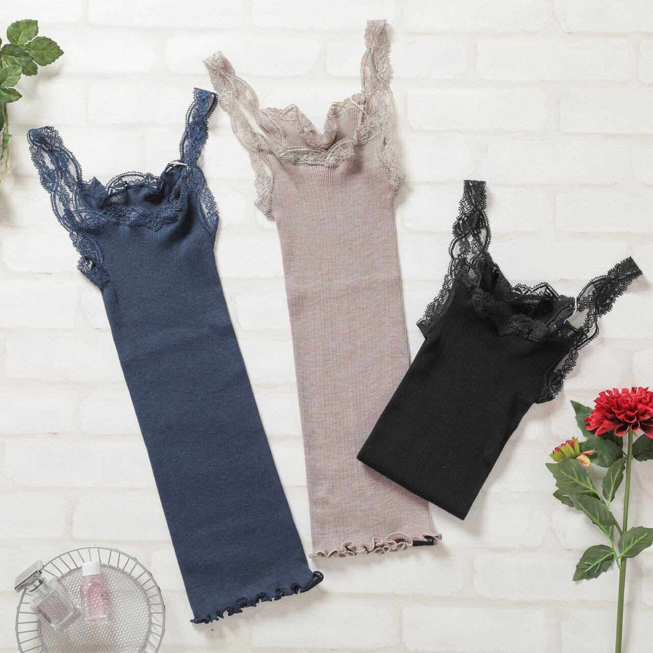 アロマティック AROMATIQUE インナー レディース キャミソール キャミ リブ ウール シルク レース 日本製 やわらか ギフト プレゼント M L グレージュ ブラック ネイビーブルー J792AR At021