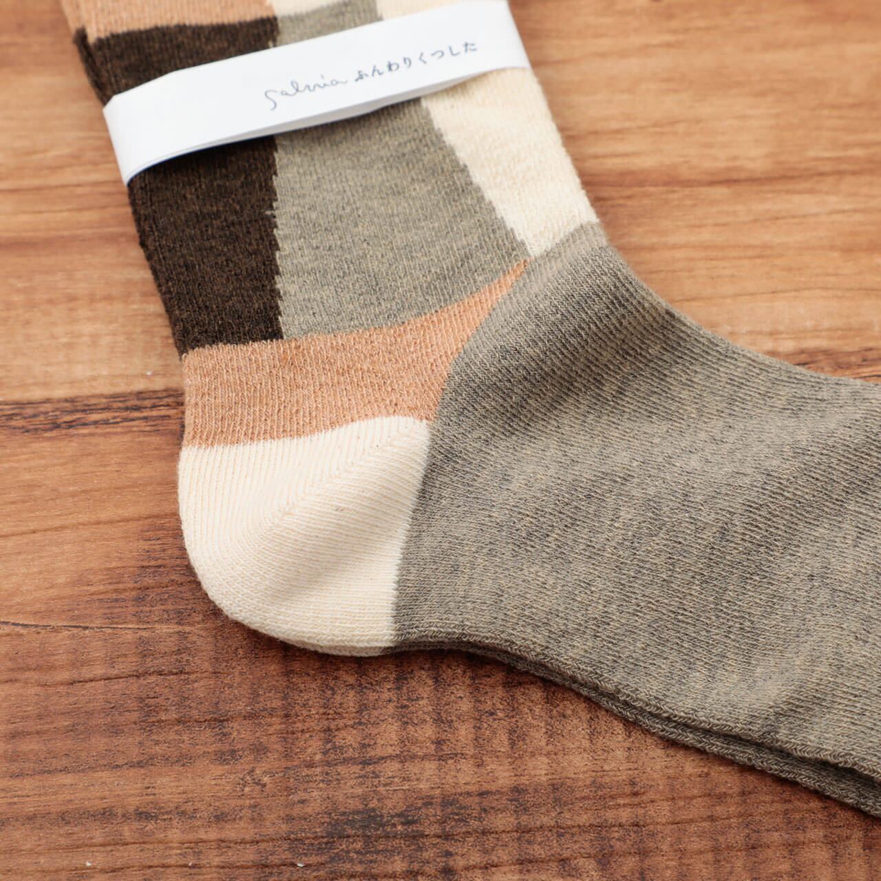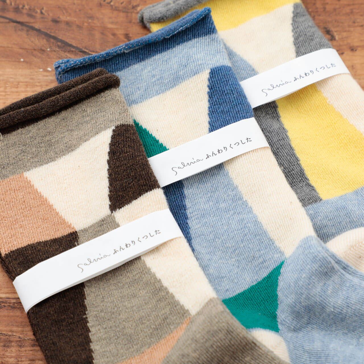 サルビア salvia 靴下 ソックス レディース ふんわりくつした ダイヤモンド コットン ゴムなし おしゃれ かわいい ナチュラル しめつけない 日本製 ギフト プレゼント ブルー/イエロー/ブラウン 22-25cm Sv010