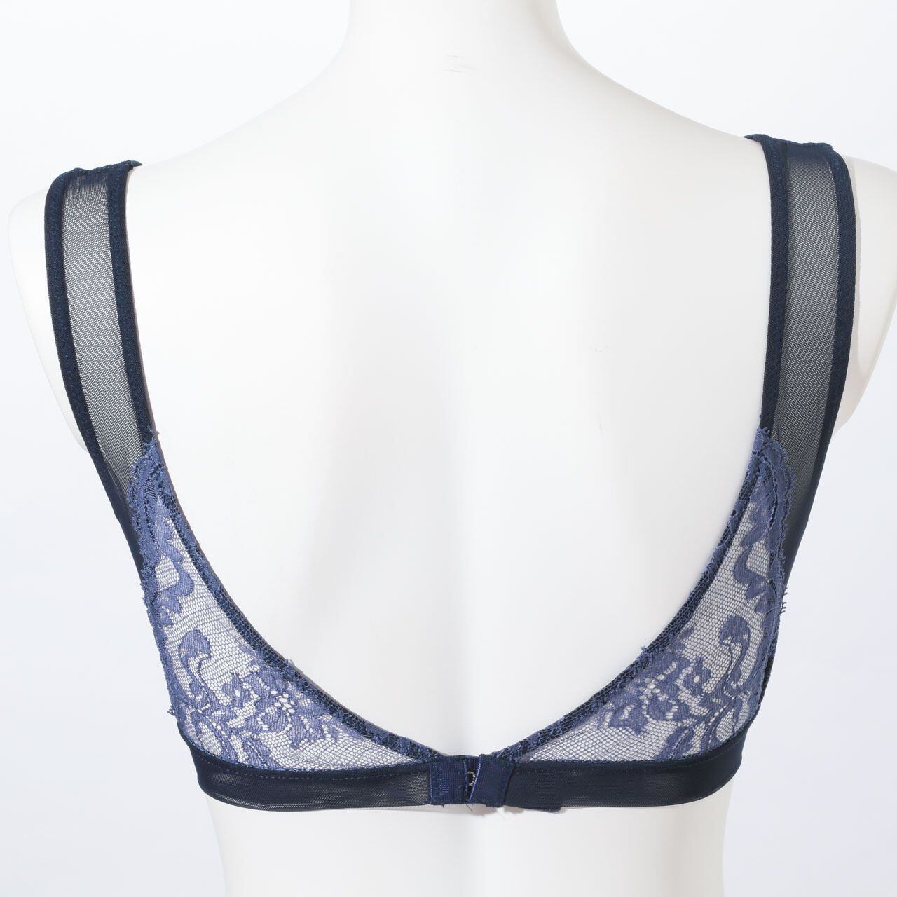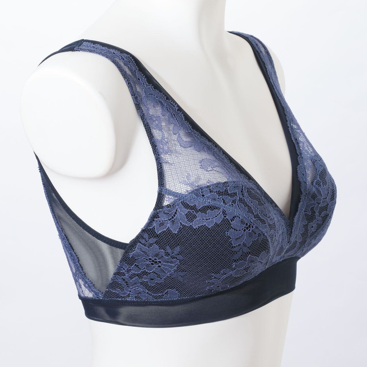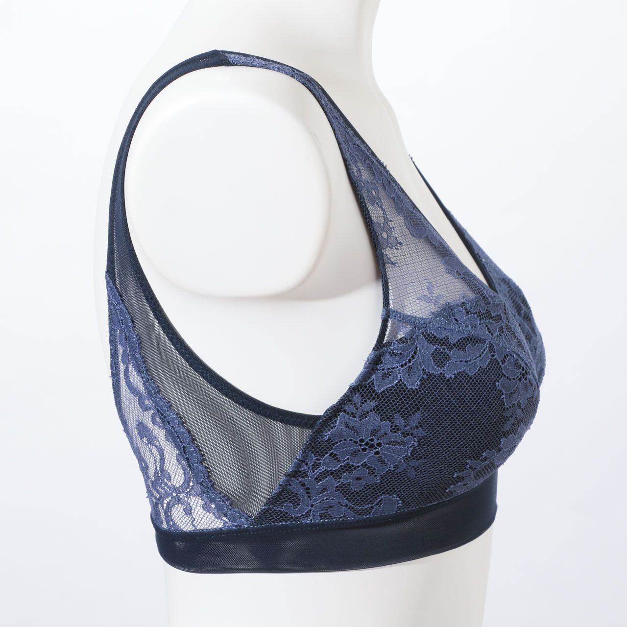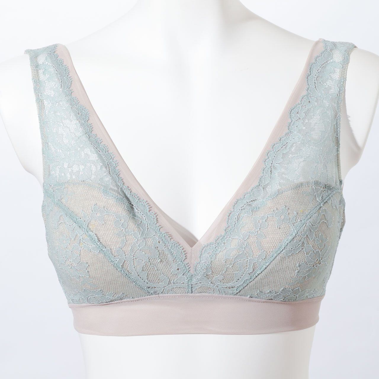 リバーレースとチュールの組み合わせが軽やかなノンワイヤーブラは、エレガント過ぎずナチュラルな印象に。