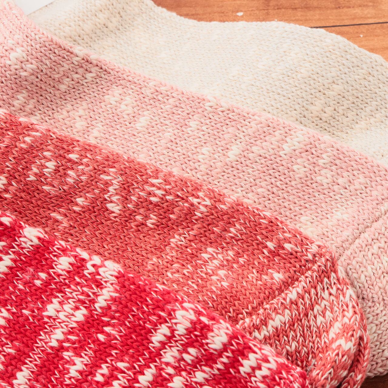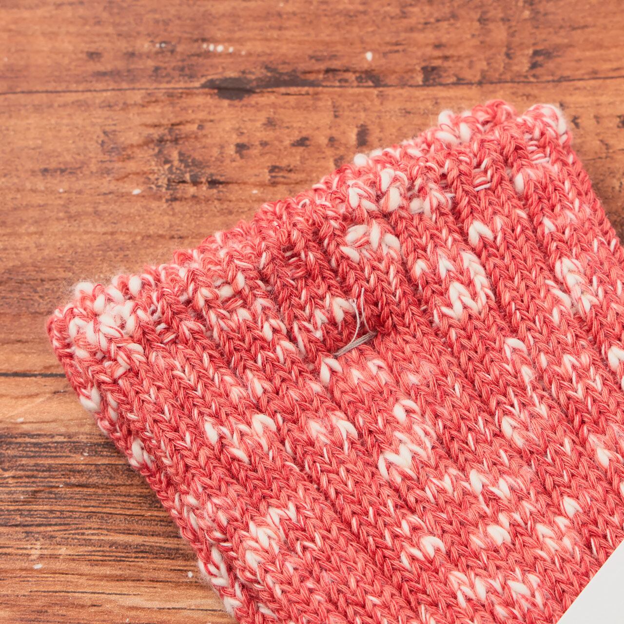 余分な締めつけの原因となるゴムは履き口だけにとどめ、リブの自然な伸縮を活かすことでずれにくく柔らかいフィット感になるよう仕上げています。