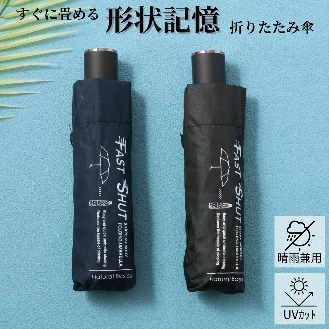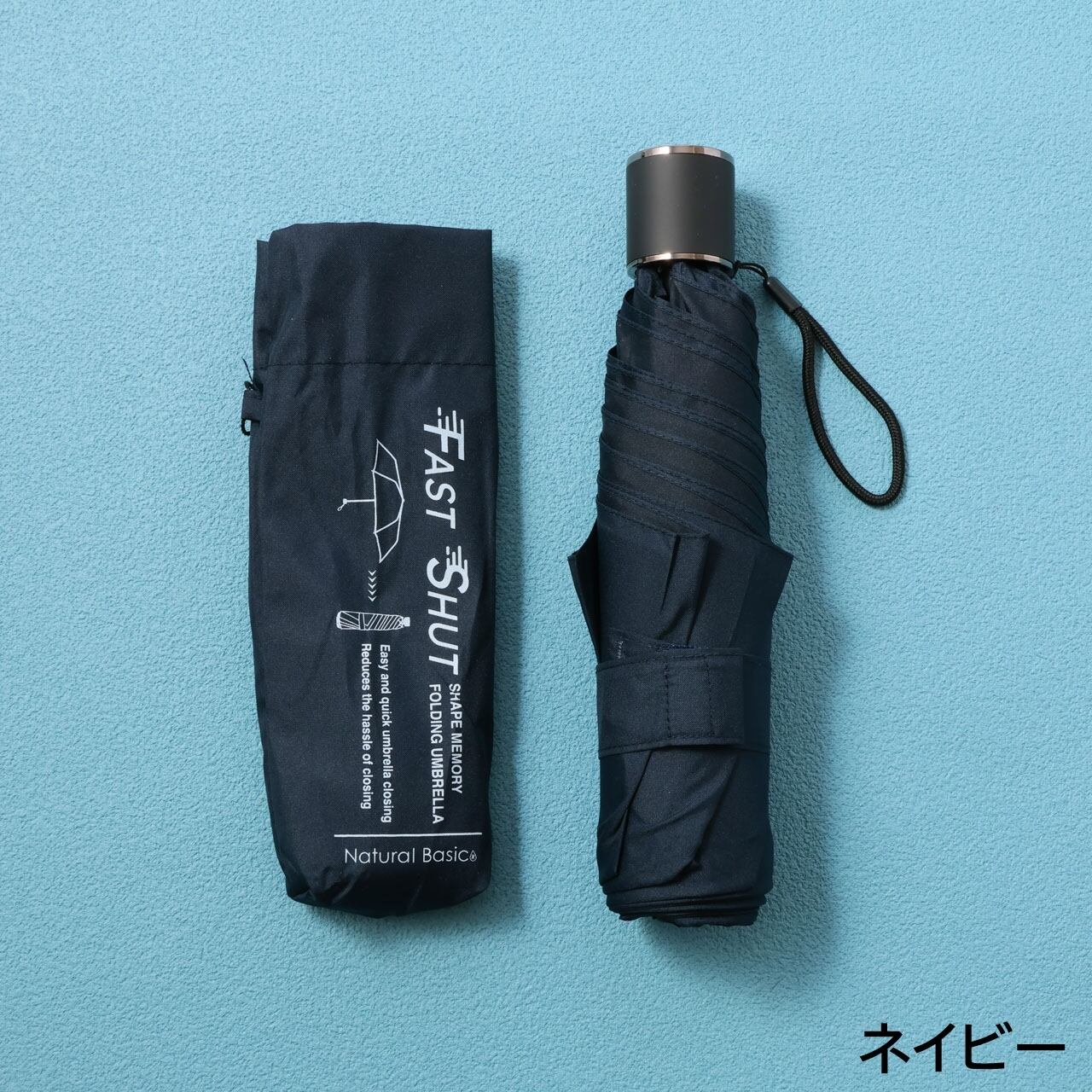 【送料無料】 折りたたみ傘 メンズ たたみやすい 簡単 320g 55cm ファストシャット FAST SHUT 中谷 形状記憶 折り畳み傘 シェイプメモリー 加工 安全カバー付き シンプル 無地 ネイビー ブラック 723-050 Nt004