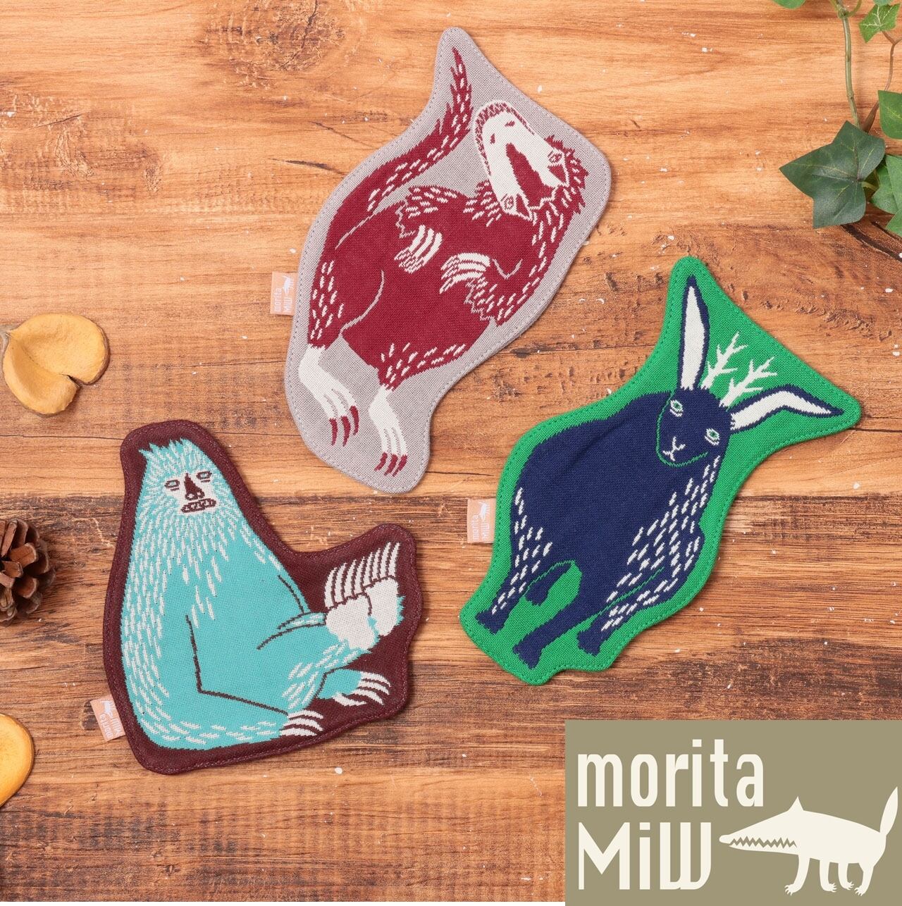 コースター おしゃれ 布 キッチン雑貨 morita MiW / 森田MiW × 楠橋紋織 コラボ ブランド リバーシブル マグカップ置き 動物 ユニーク 布 綿 ギフト プレゼント レッド グレー ブルー グリーン ネイビー A-6903 Kb029