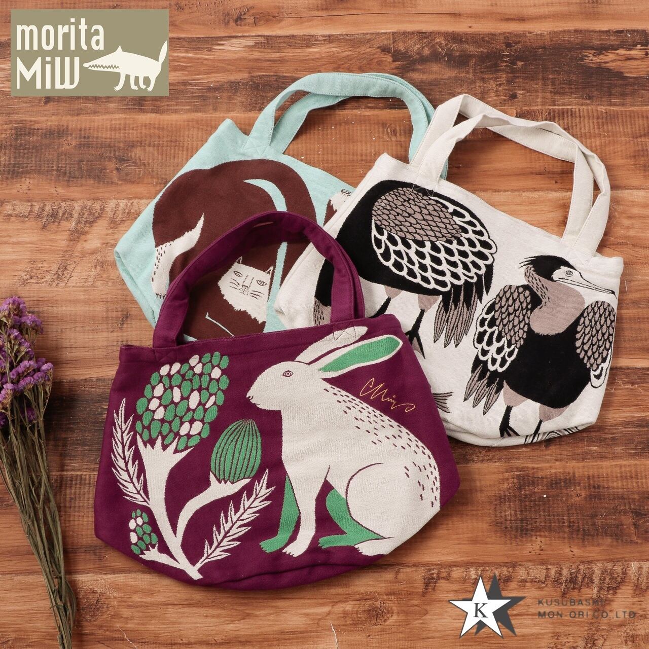 トートバッグ レディース 内ポケット付き 肩掛け morita MiW / 森田MiW × 楠橋紋織 コラボ ブランド 綿 100% 大きめ A4 厚手生地 裏地付き イラスト ユニーク うさぎ ねこ 猫 鳥 動物 ギフト プレゼント Kb011