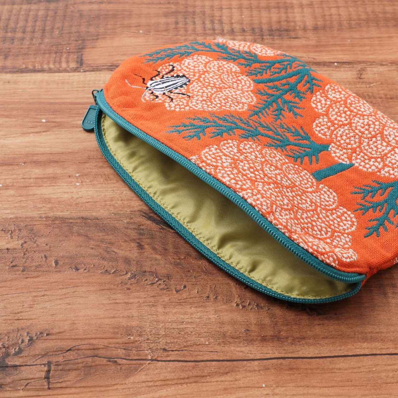 ポーチ 小物入れ 小さめ レディース morita MiW / 森田MiW × 楠橋紋織 コラボ ブランド 綿 100% ガーゼ生地 丈夫 ペンケース コスメポーチ 収納 便利 花 虫 オレンジ ブルー ベージュ ピンク ギフト プレゼント Kb015