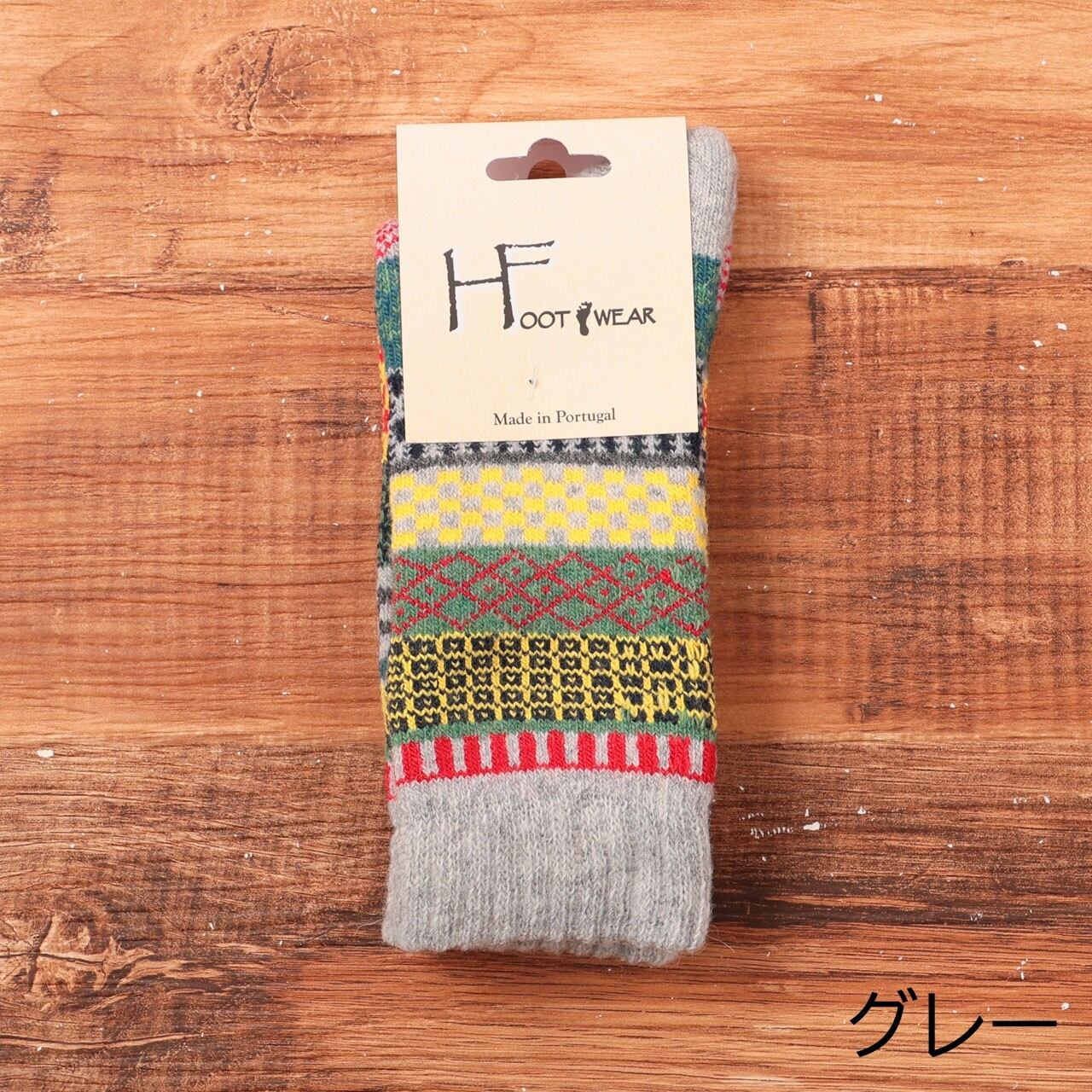 靴下 ウール混マルチデザインソックス H FOOTWEAR エイチフットウェア レディース ホップ柄 マルチデザイン クルー丈 秋 冬 暖かい 快適 おしゃれ かわいい ギフト プレゼント 22.5-25.0 ホワイト グレー LABYRINTHE ラビリンス Hf015