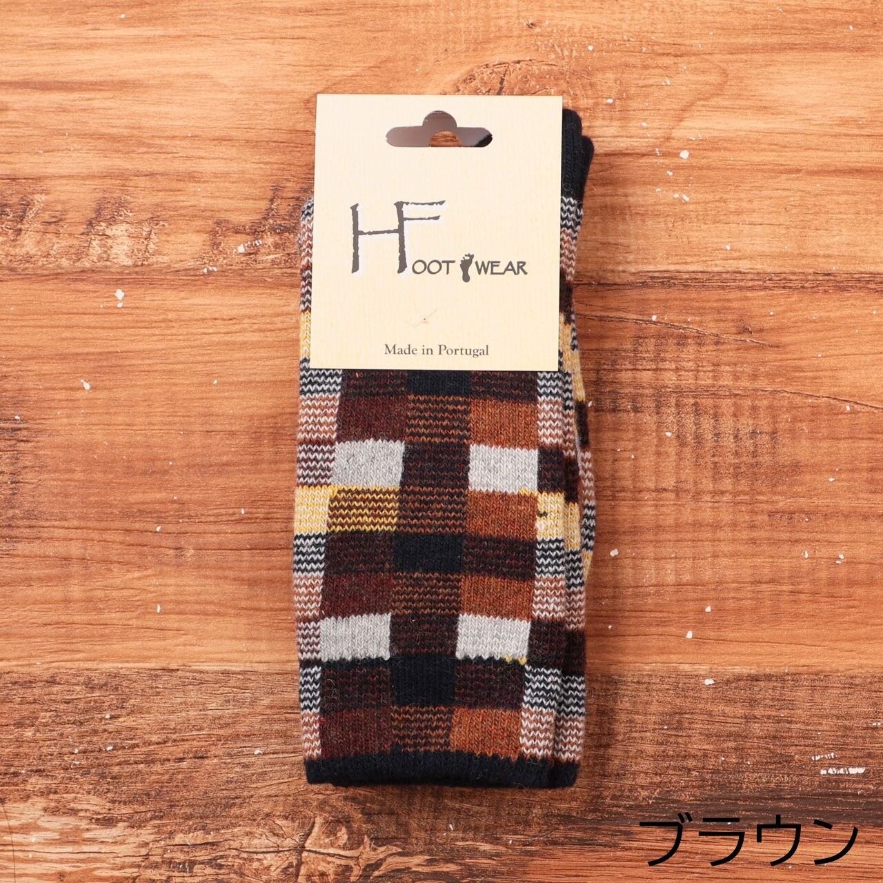 靴下 ウール混アルルカンデザインソックス H FOOTWEAR エイチフットウェア レディース ホップ柄 くるぶし丈 冬物 暖かい 快適 おしゃれ かわいい ギフト プレゼント 約22.5-25.0 イエロー ブラウン マルチ ALREQUIN(アルルカン) Hf014