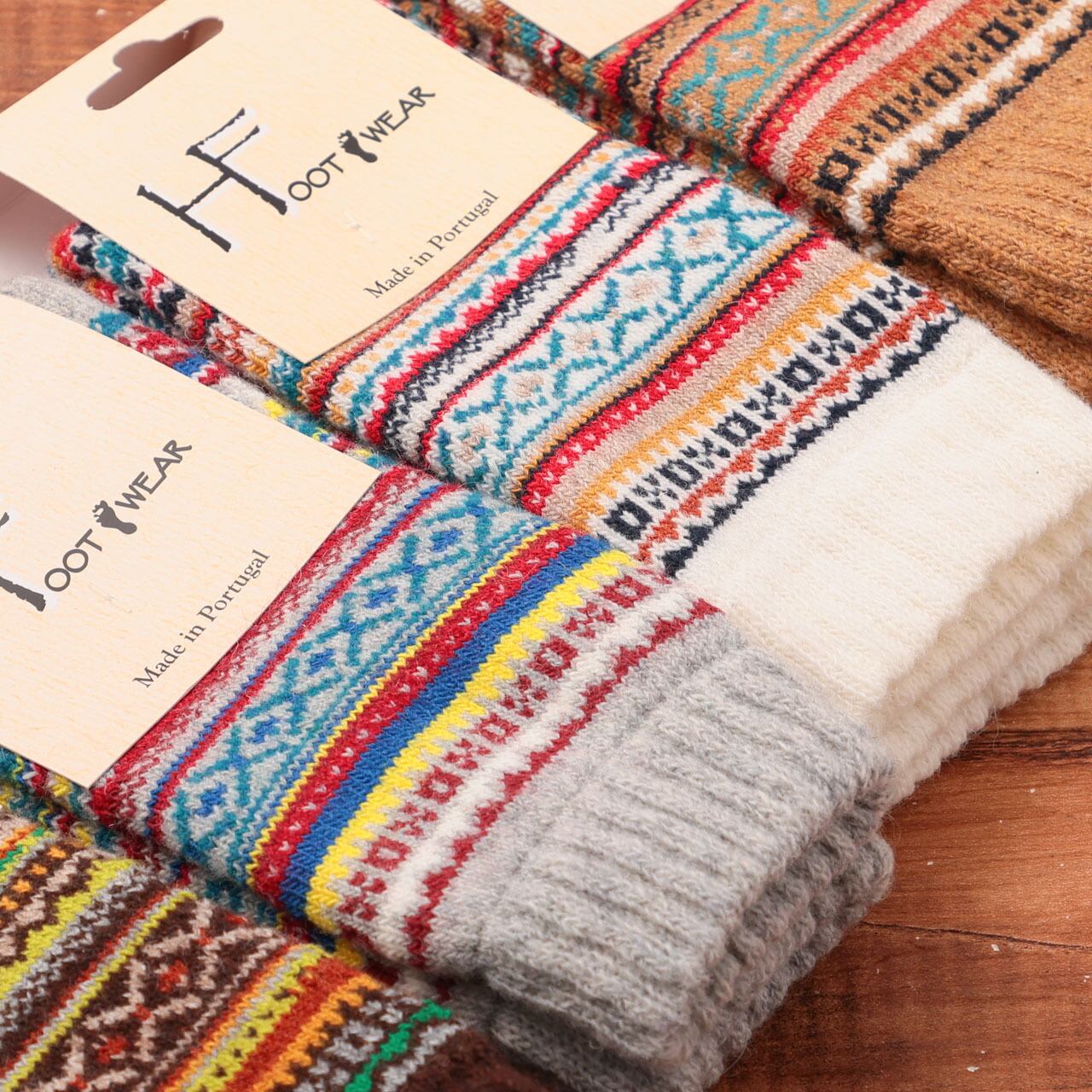 H FOOTWEAR エイチ フットウェア 靴下 ソックス レディース 厚手ソックス FAIR ISLE フェアアイル ウール クルー丈 編み込み ポルトガル製 暖かい 秋 冬 ギフト プレゼント フリーサイズ Hf003