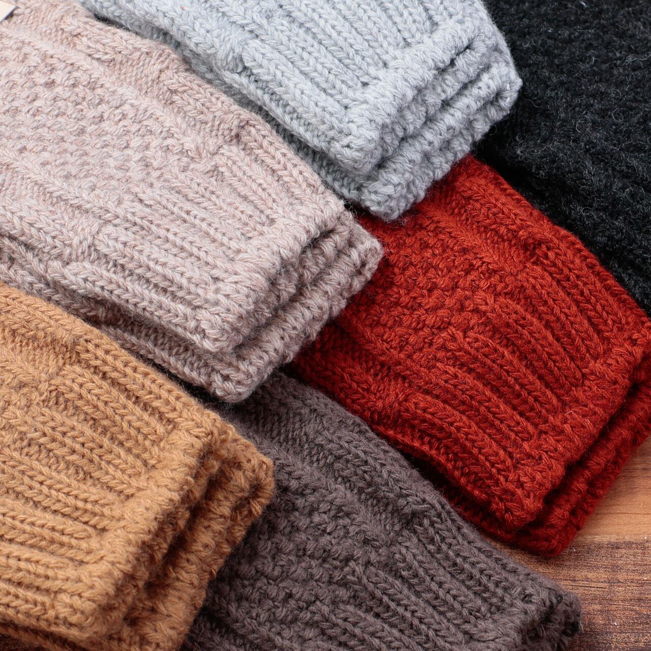 ケーブル編みがかわいく、ウール混で肉厚な素材感なので、冬の寒い日にも暖かく足元を守ってくれます。