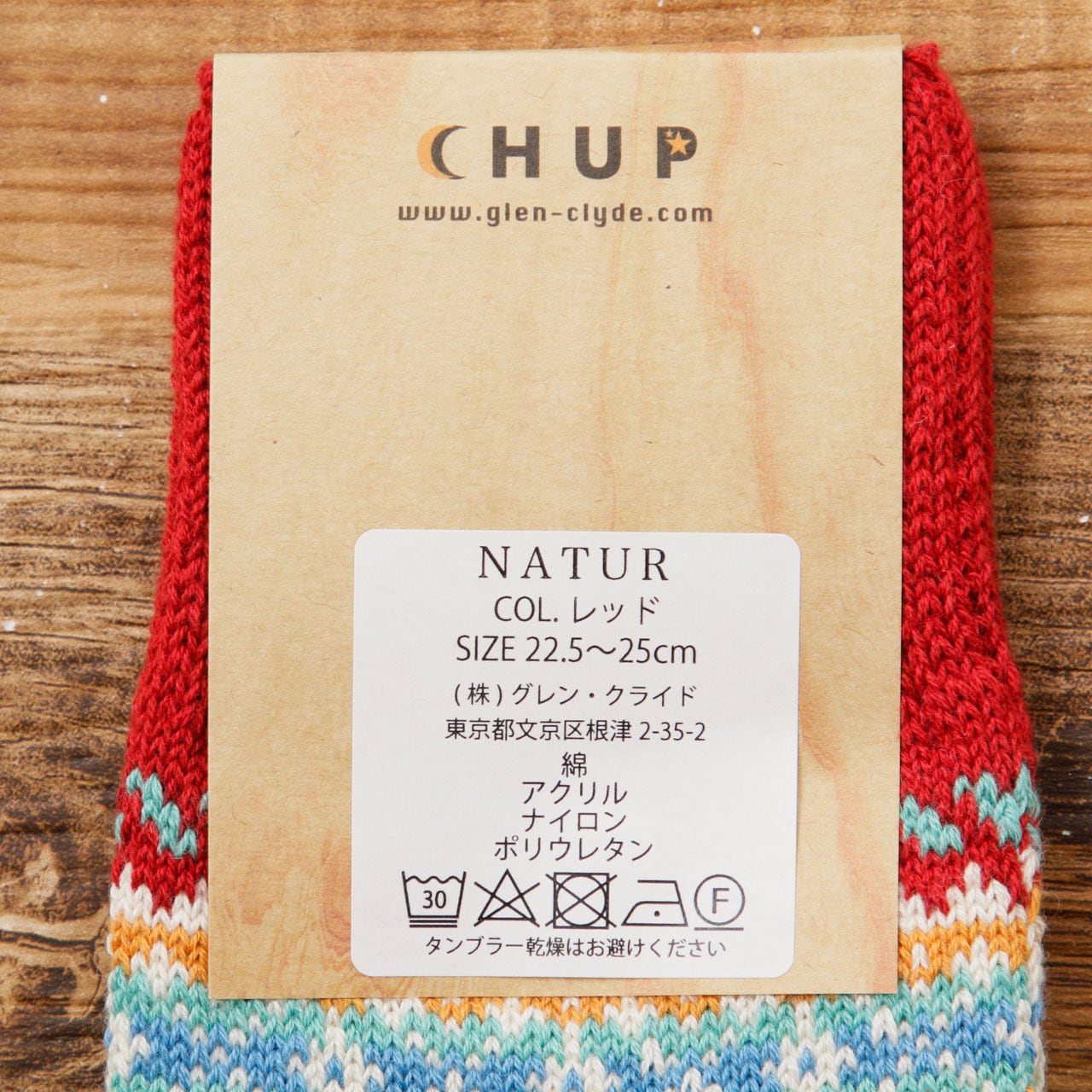 チュプ CHUP 靴下 ソックス NATUR 自然 レディース 柄物 おしゃれ ブランド 綿 日本製 ギフト プレゼント ネイビー レッド ライトブルー 22.5-25cm Ll107